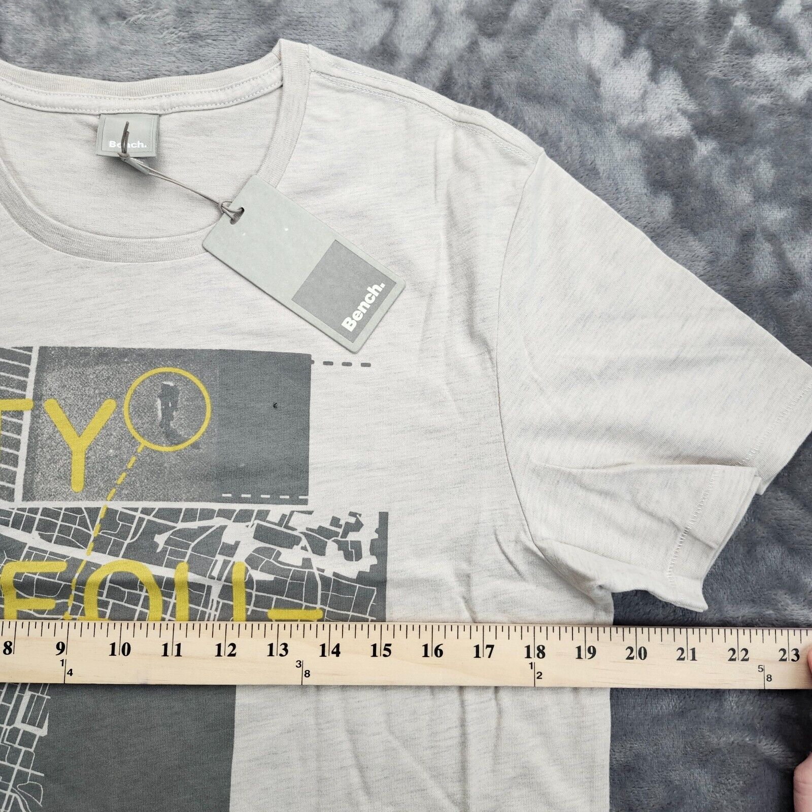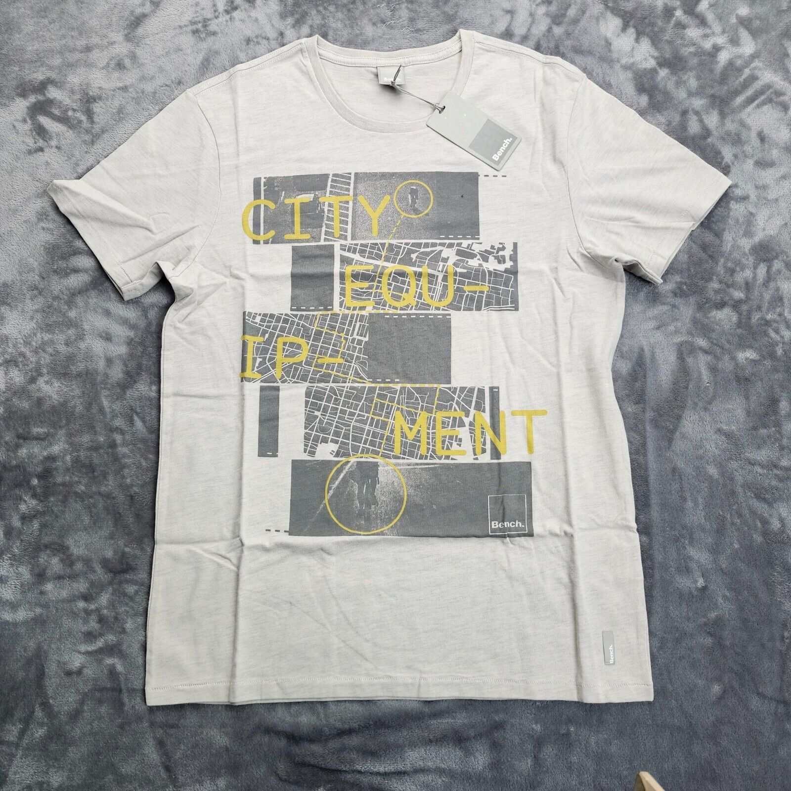 Bench Urban Wear Unisex Graphic T-shirt Size Medium Gray and Yellow