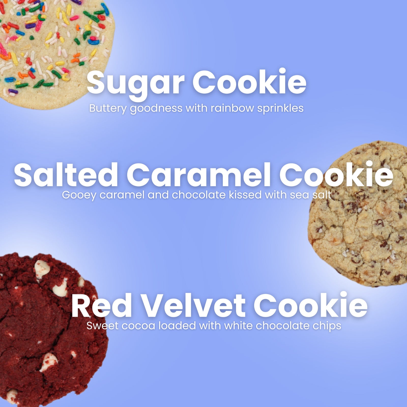 At Kiss Me Cookie, every batch of our gourmet cookies are baked fresh to perfection, creating a soft, chewy texture that's simply irresistible.