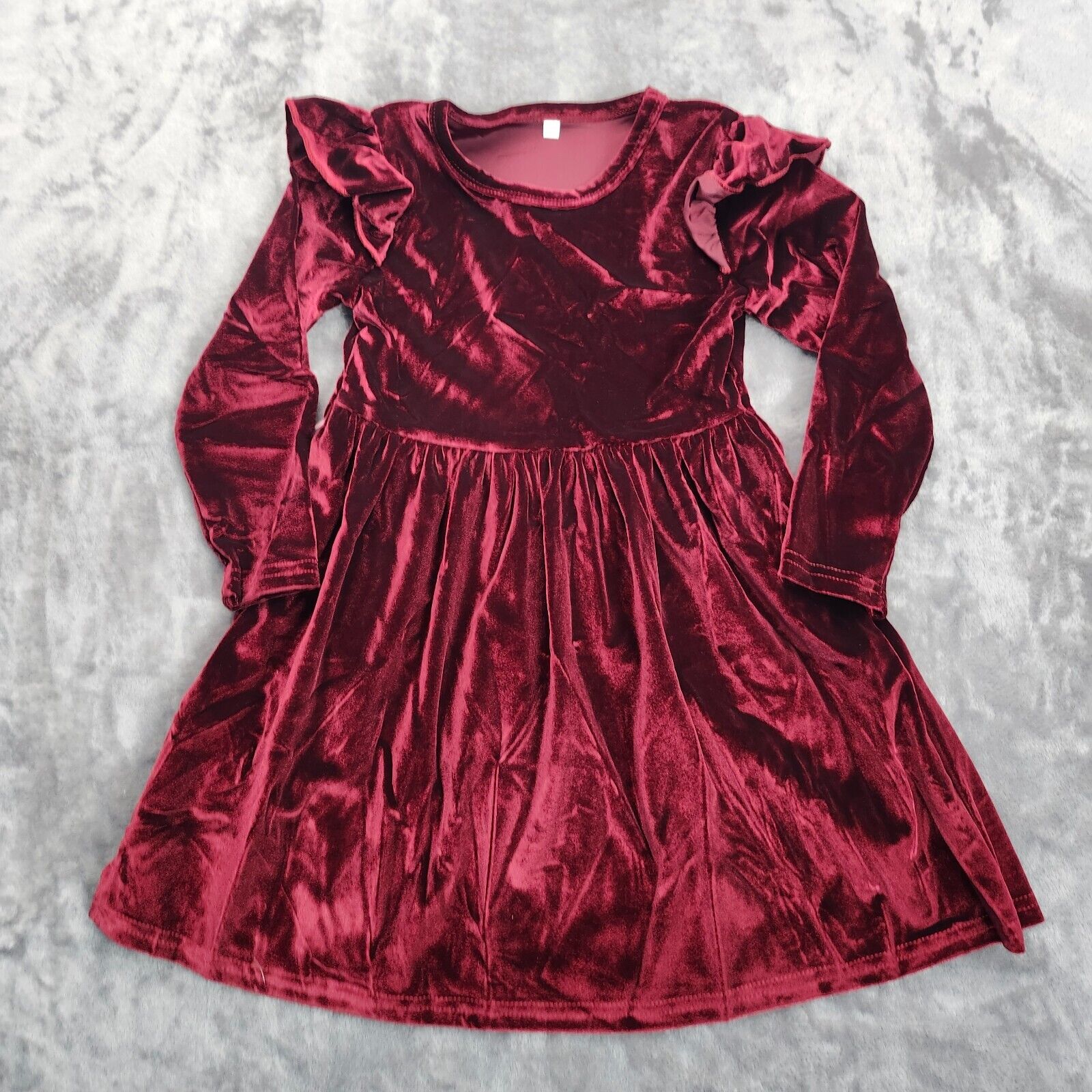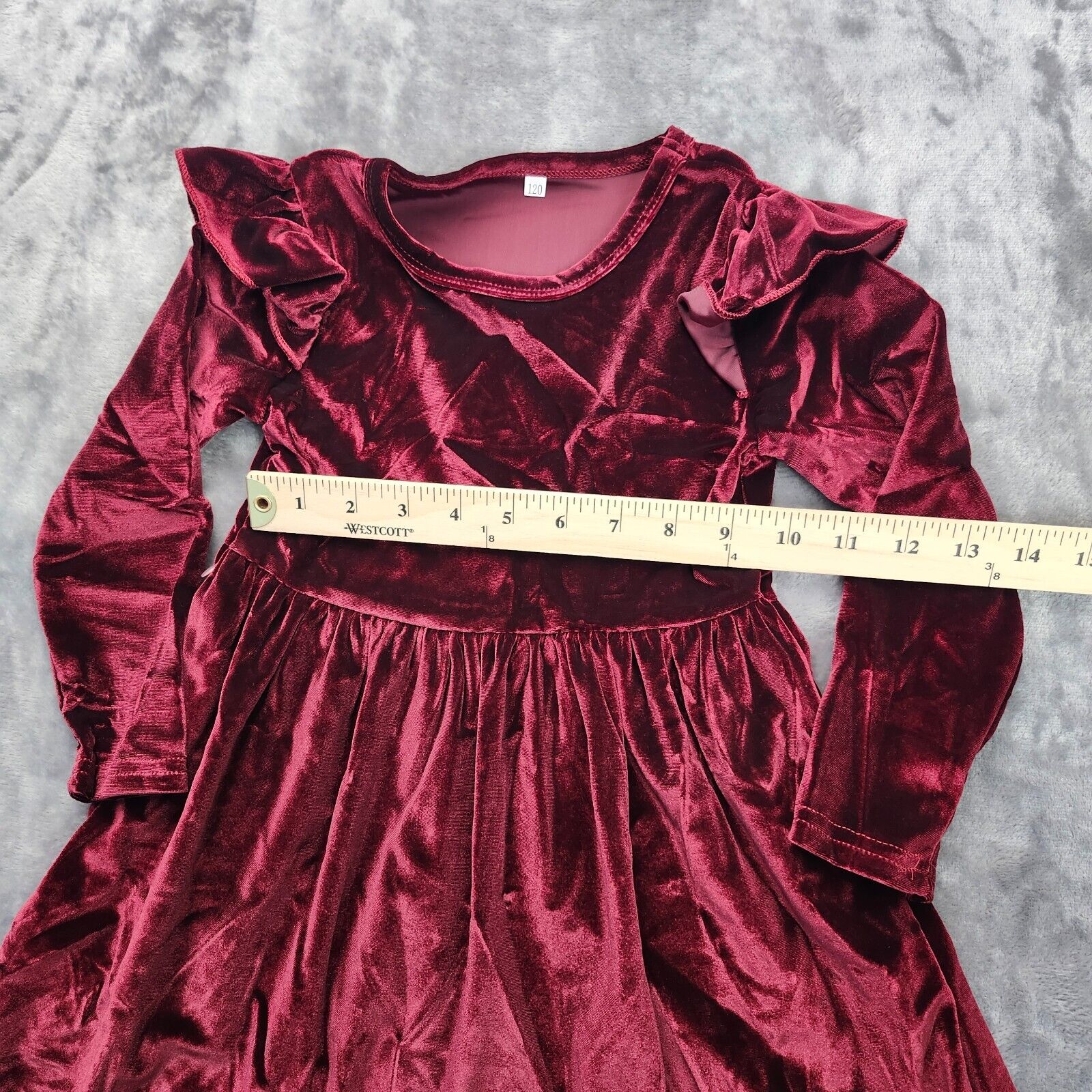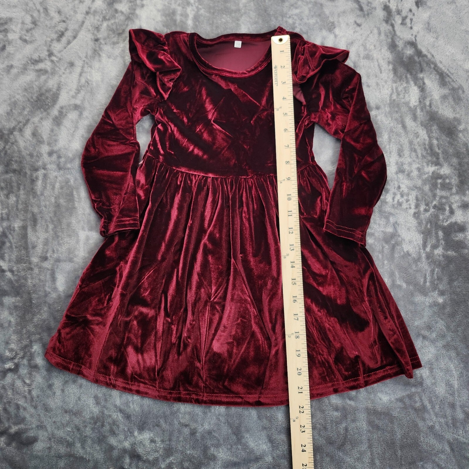 Girls Winter Dress Single Sided Velvet for Kids Twirl Dress Ruffle Hem 3-4 years
