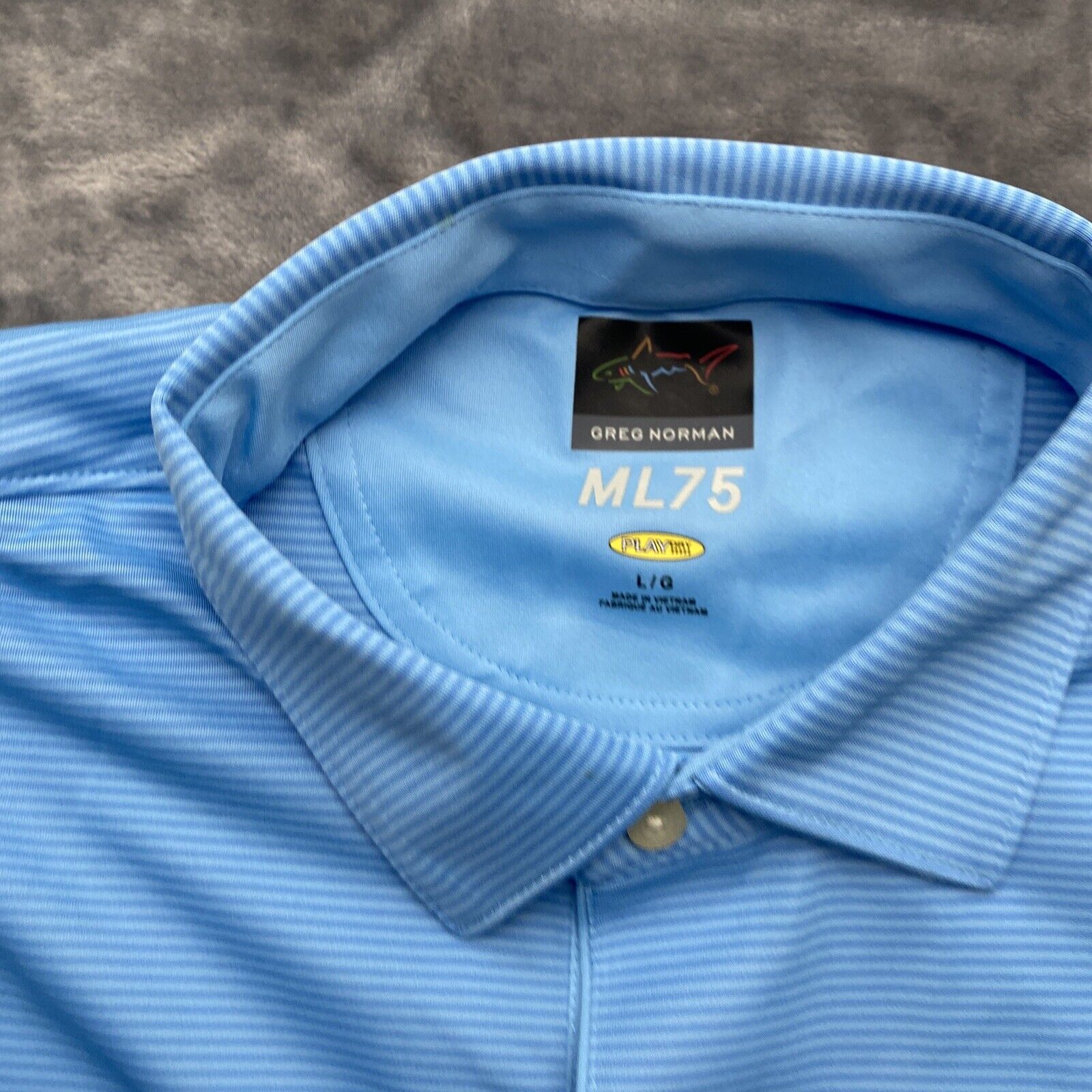 Greg Norman Golf Polo Shirt Men's Play Dry Performance Nany Blue Striped Size L