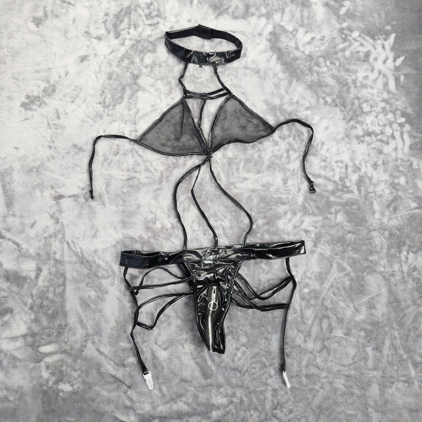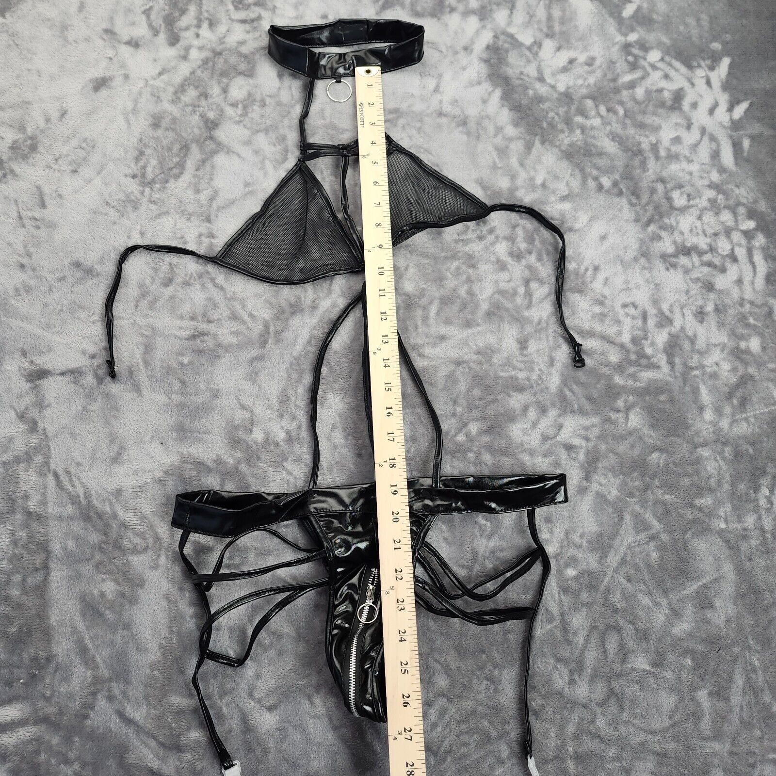 Hollow Out Temptation Babydoll Underwear Sleepwear Suit Black 2XL