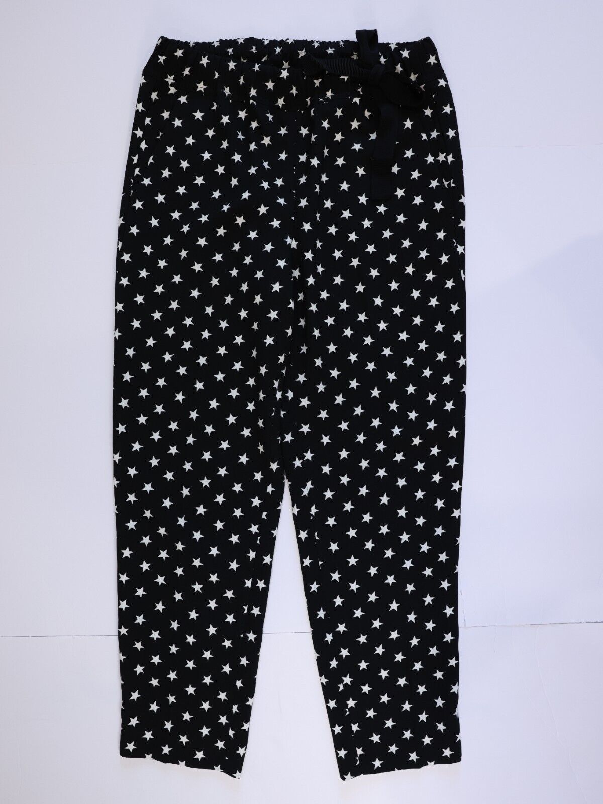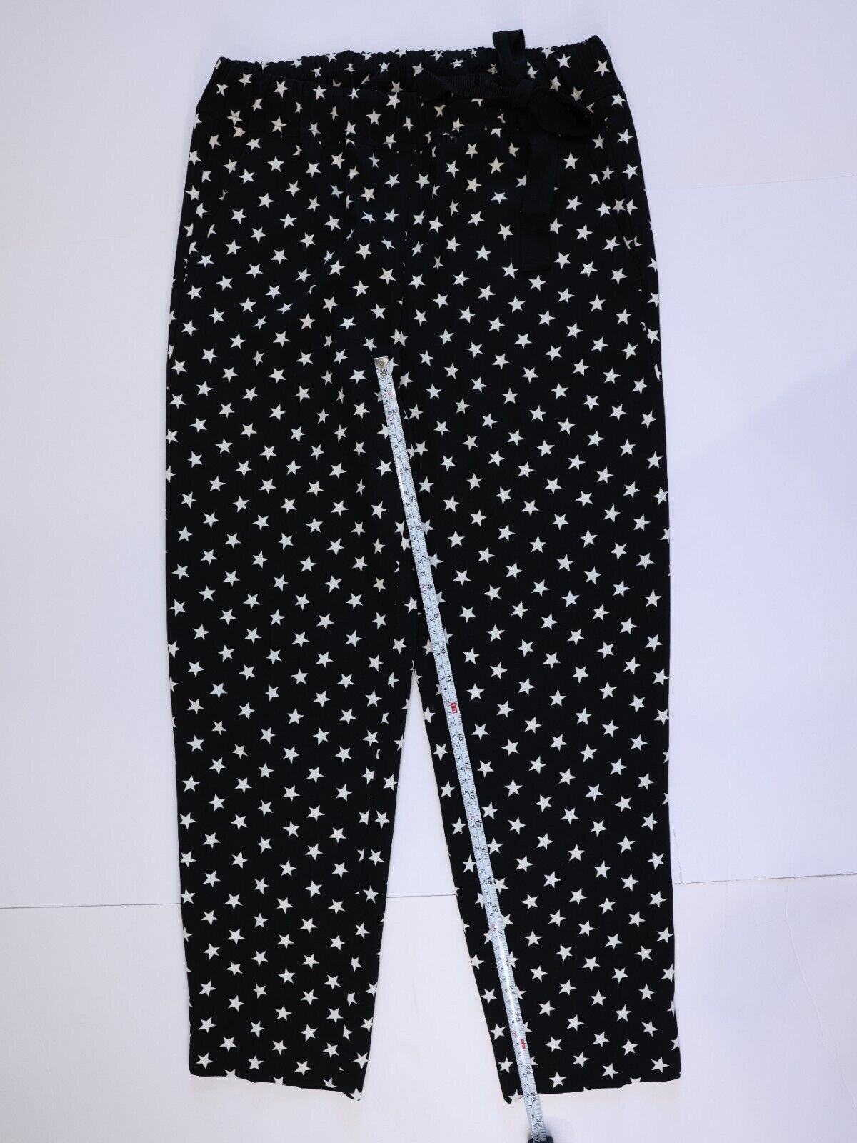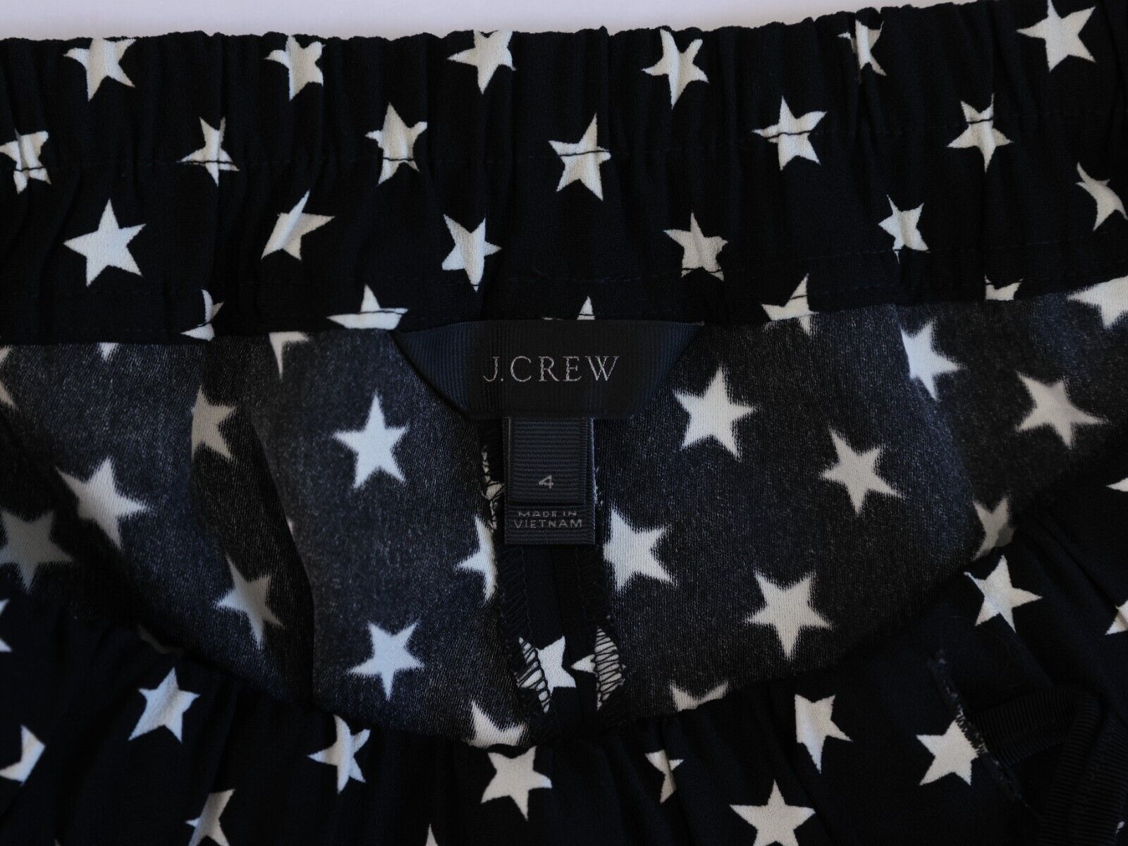J Crew Star Print Black Crepe Pull On Tie Waist Cropped Jogger Pants Trousers