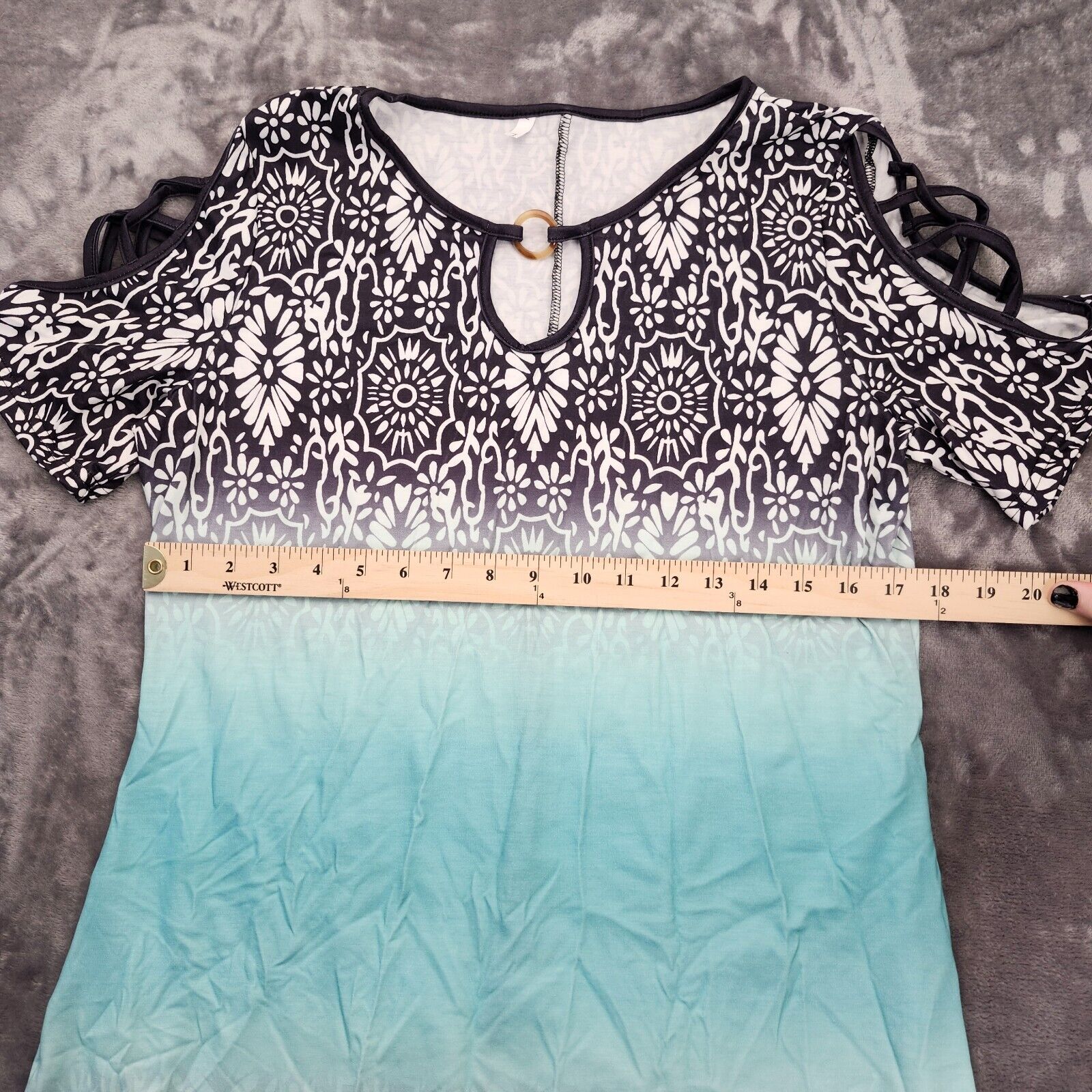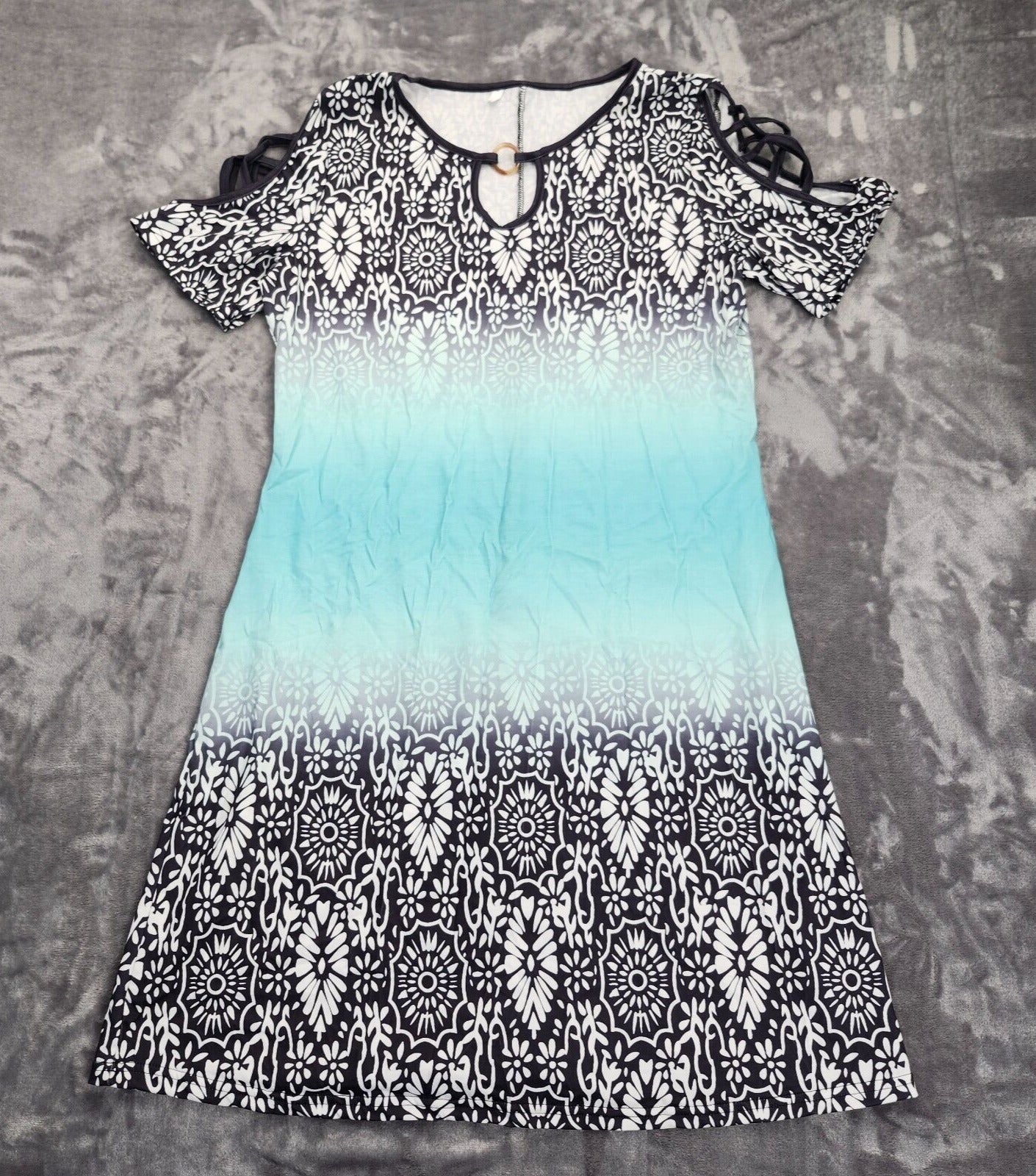 Ladies Cold Shoulder Boho Tshirt Dress Short Sleeve O-Neck Size Large