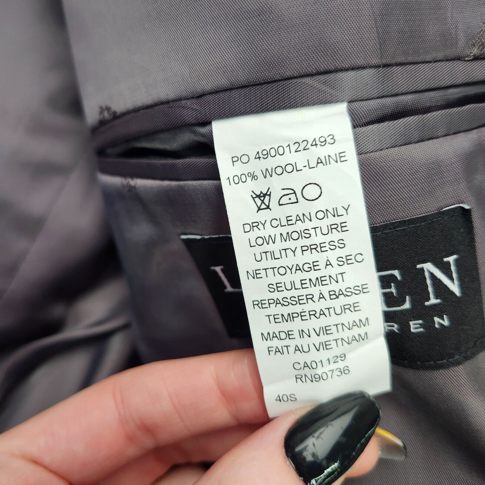 Lauren Ralph Lauren Classic-Fit Wool Suit Jacket Black/White Herringbone 40S NWT