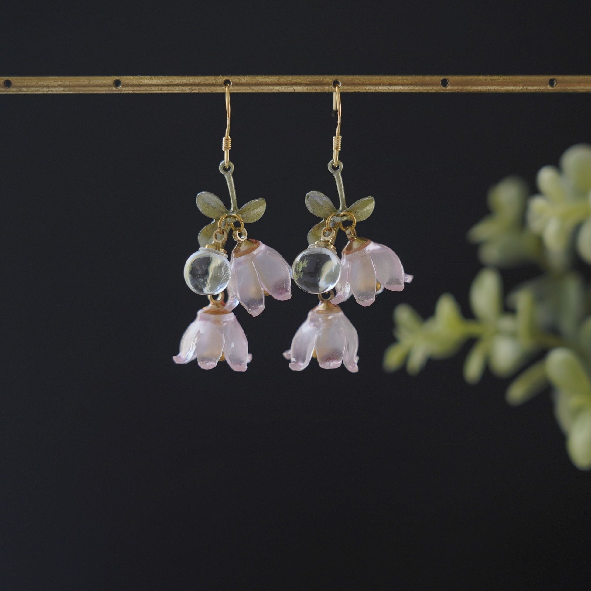 Our lily of the valley earrings are made with acrylic flowers, resin water drops and feature 925 silver earrings hooks which are good for delicate skin: