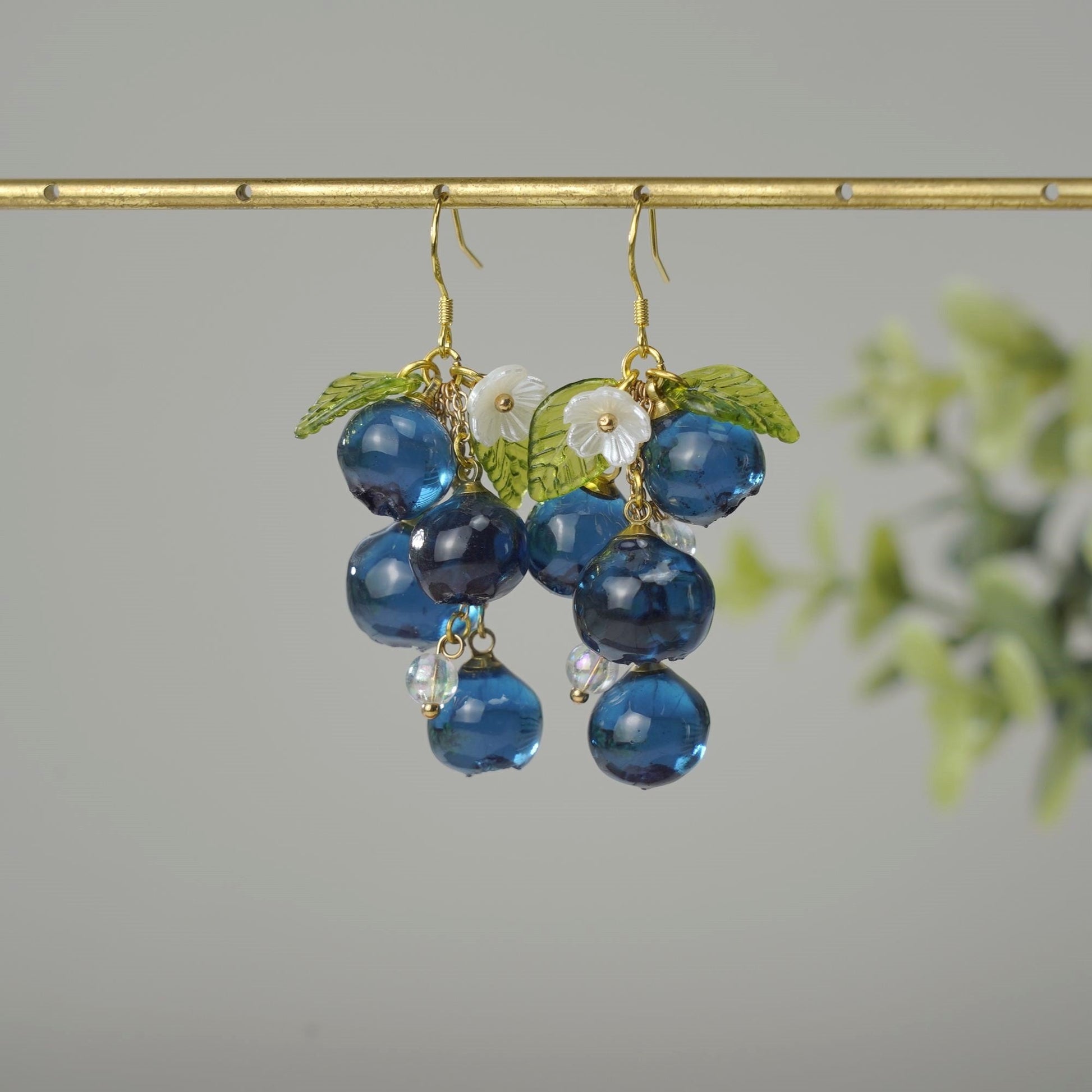 Luxury Blueberry Fruit Cluster Earrings | Handmade Resin Art Blueberry Dangle Earrings