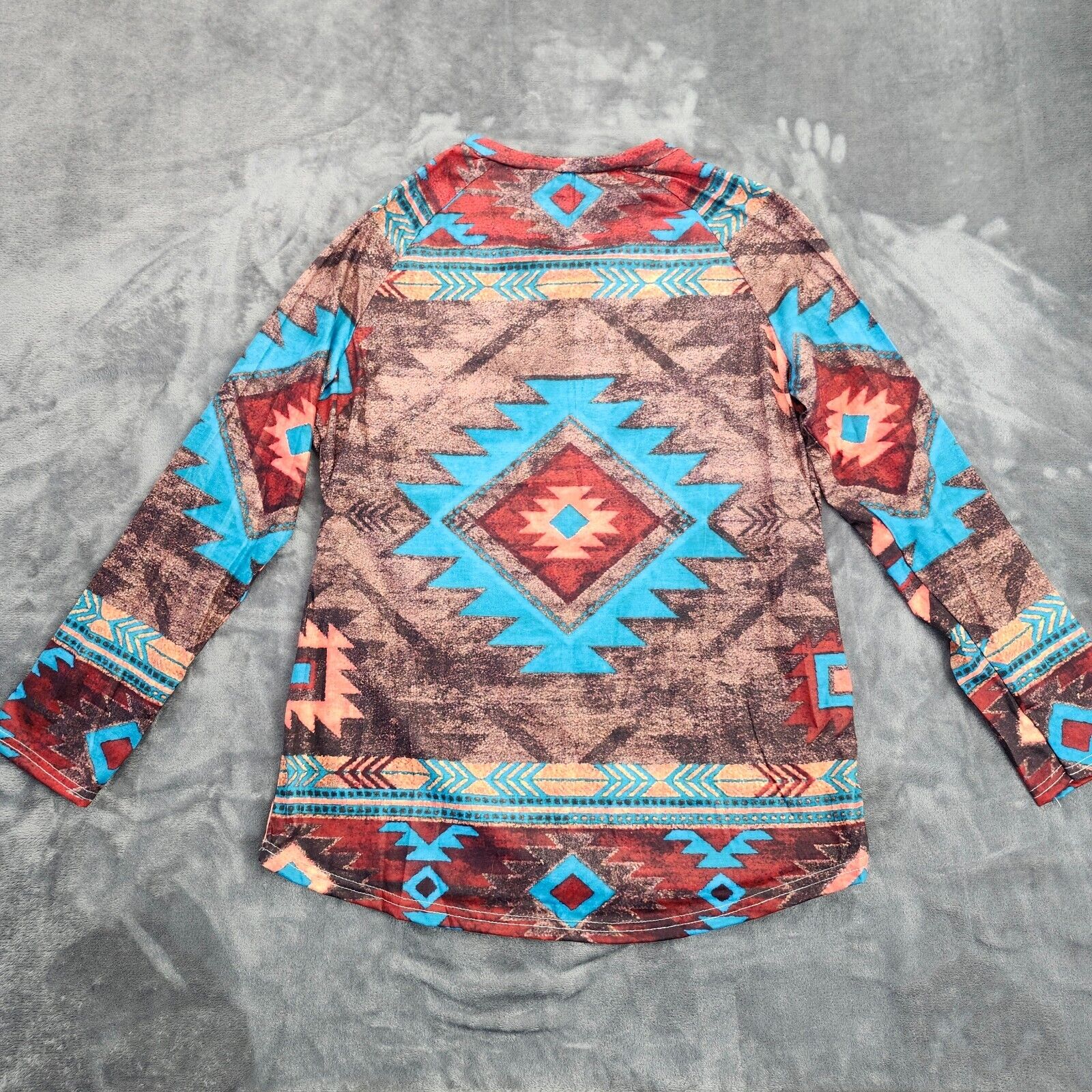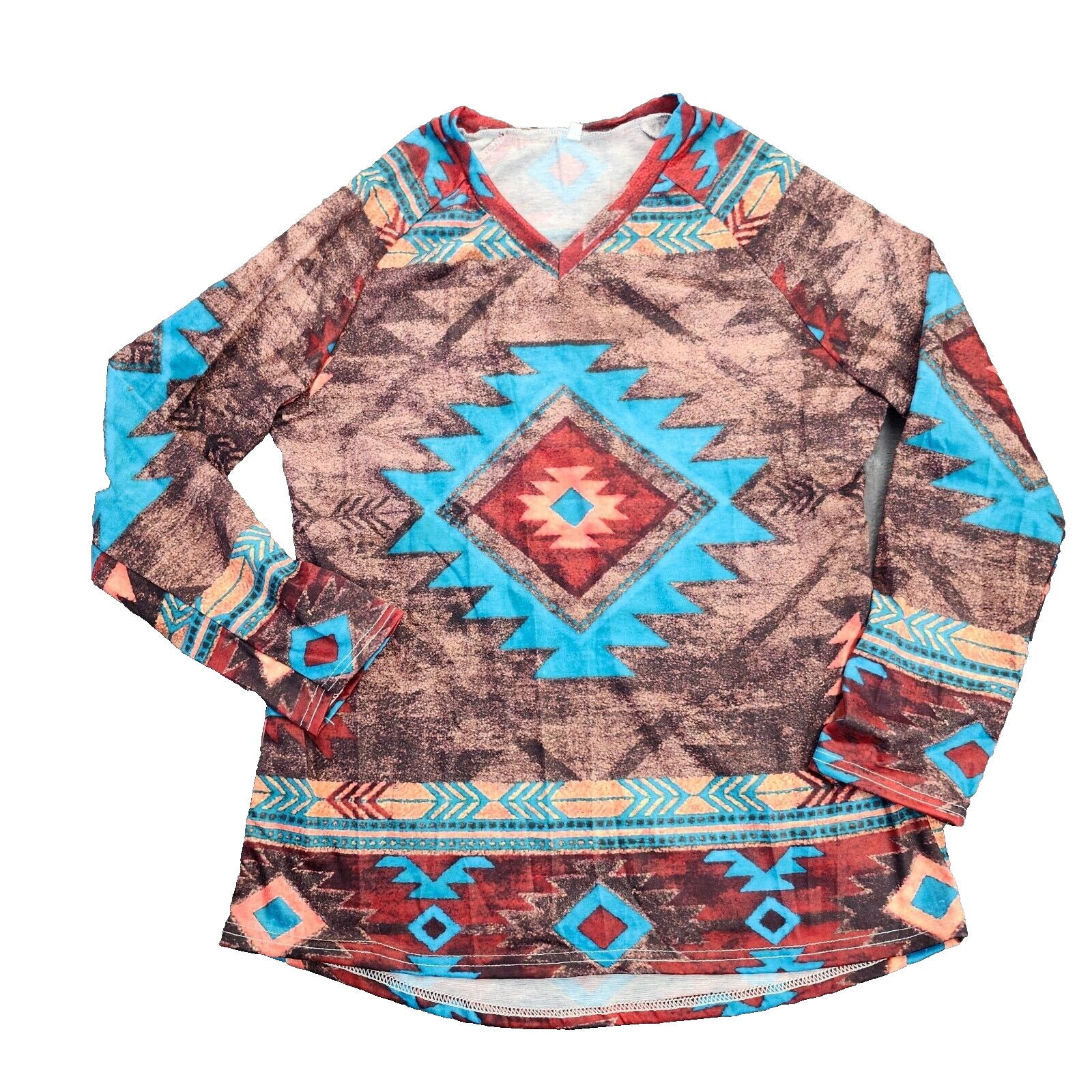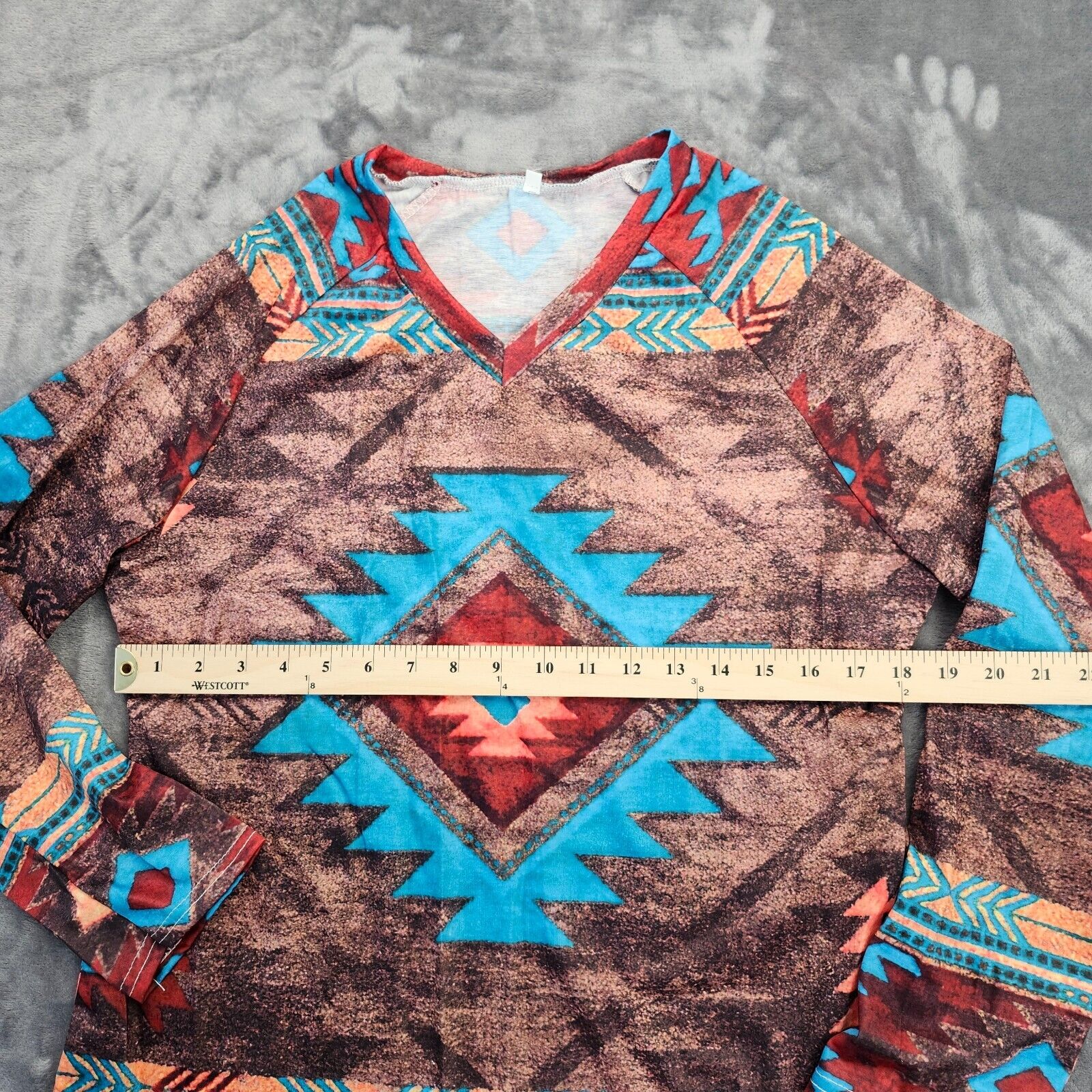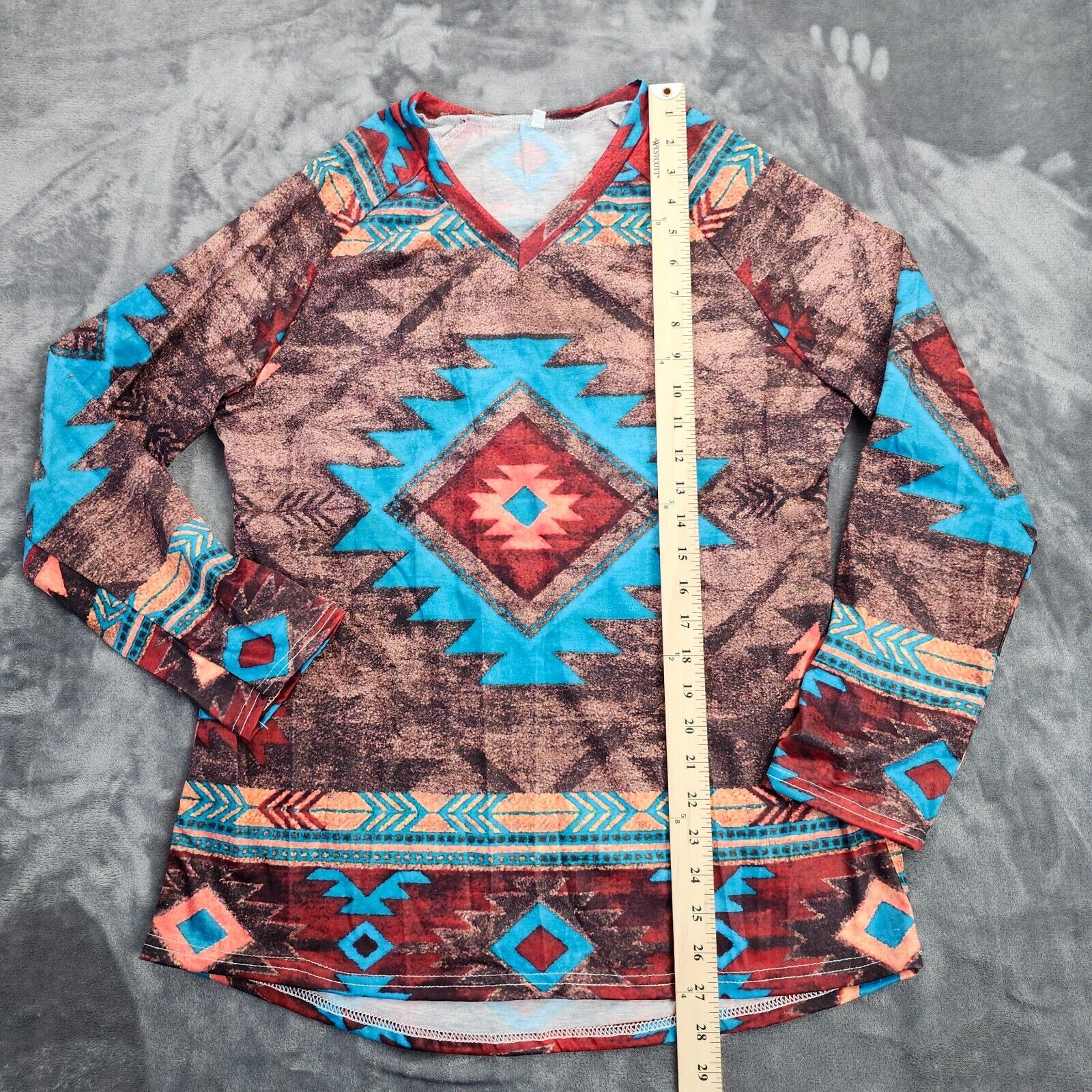 Magroz Women's Tops Vintage Geometric Printing V Neck Tunic Tshirt Long Sleeve M