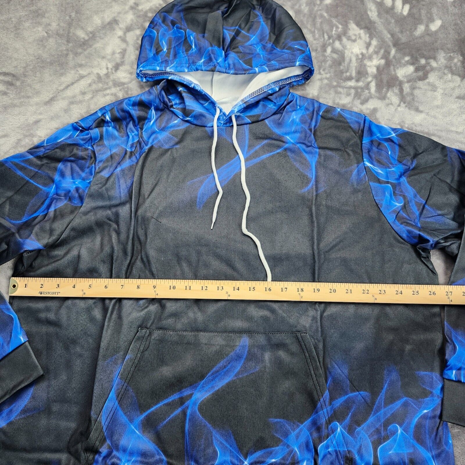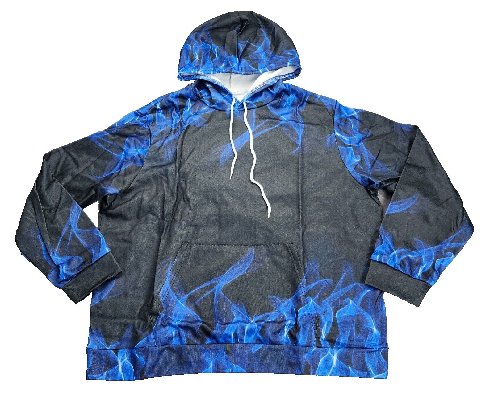 Men's Flame 3D Printing Hoodie Sweatshirt, Unisex Pullover Hoodie Blue 4XL