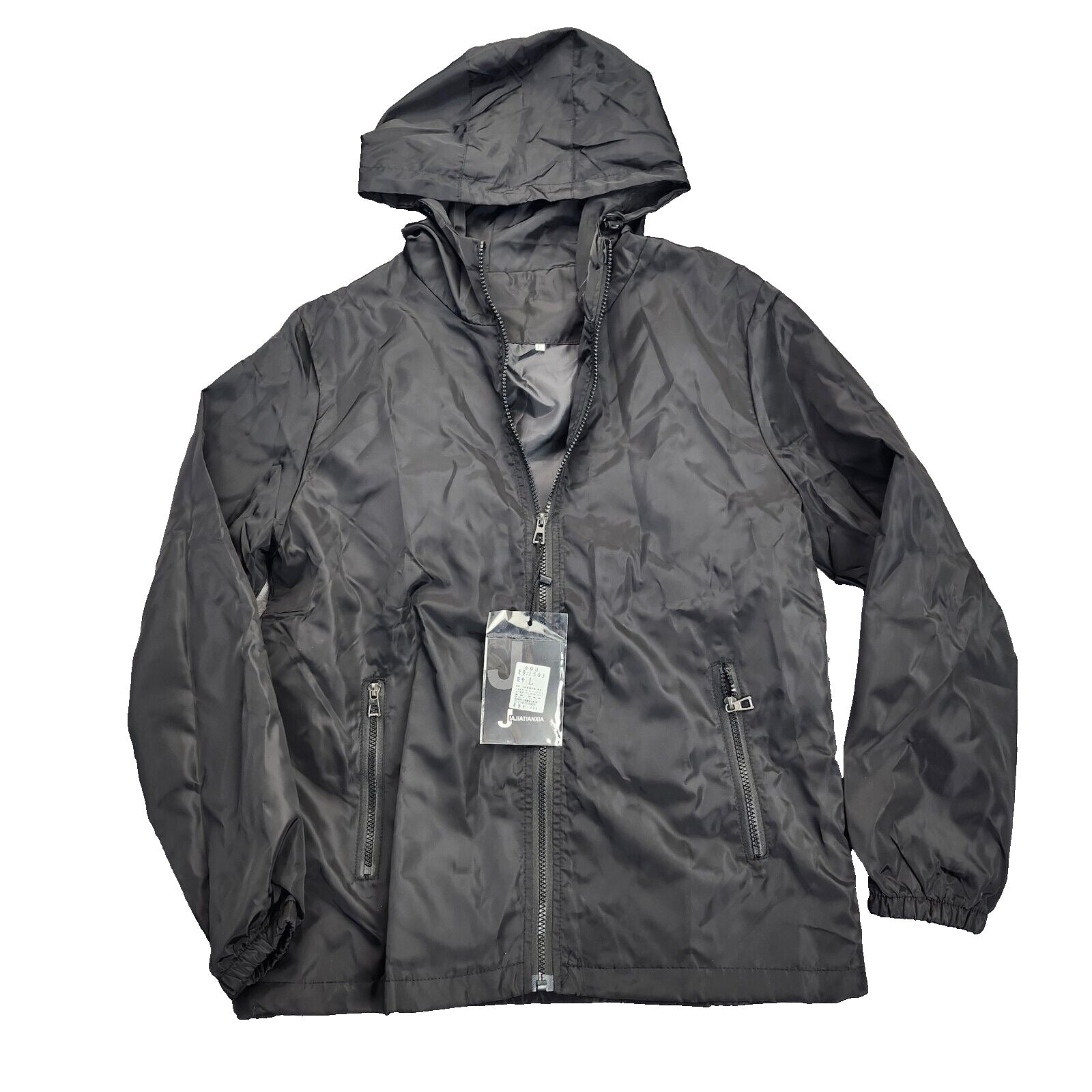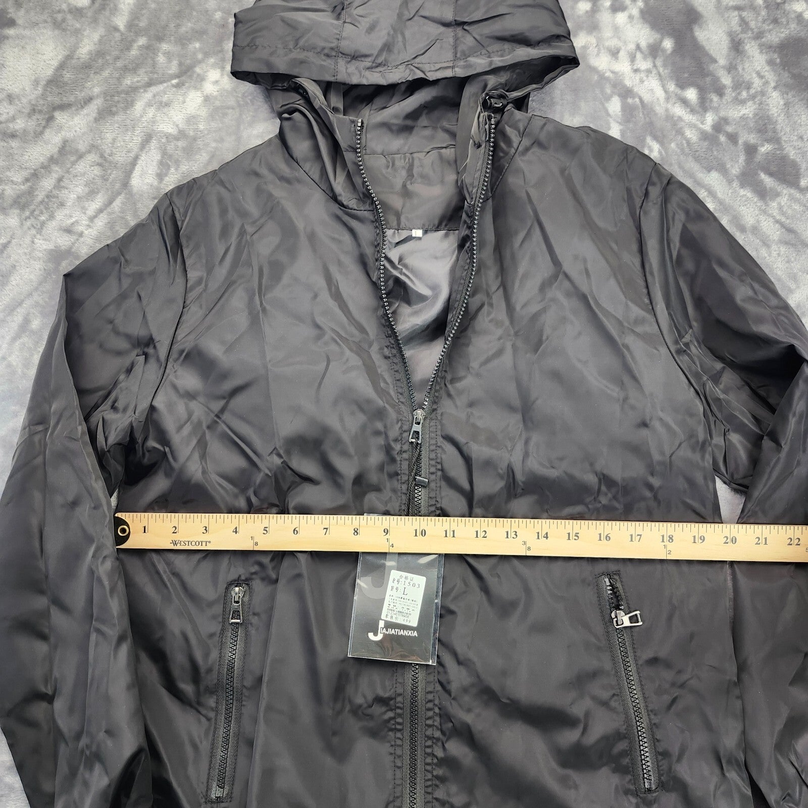 Mens Full Zip Coat Solid Color Black Long Sleeve Large