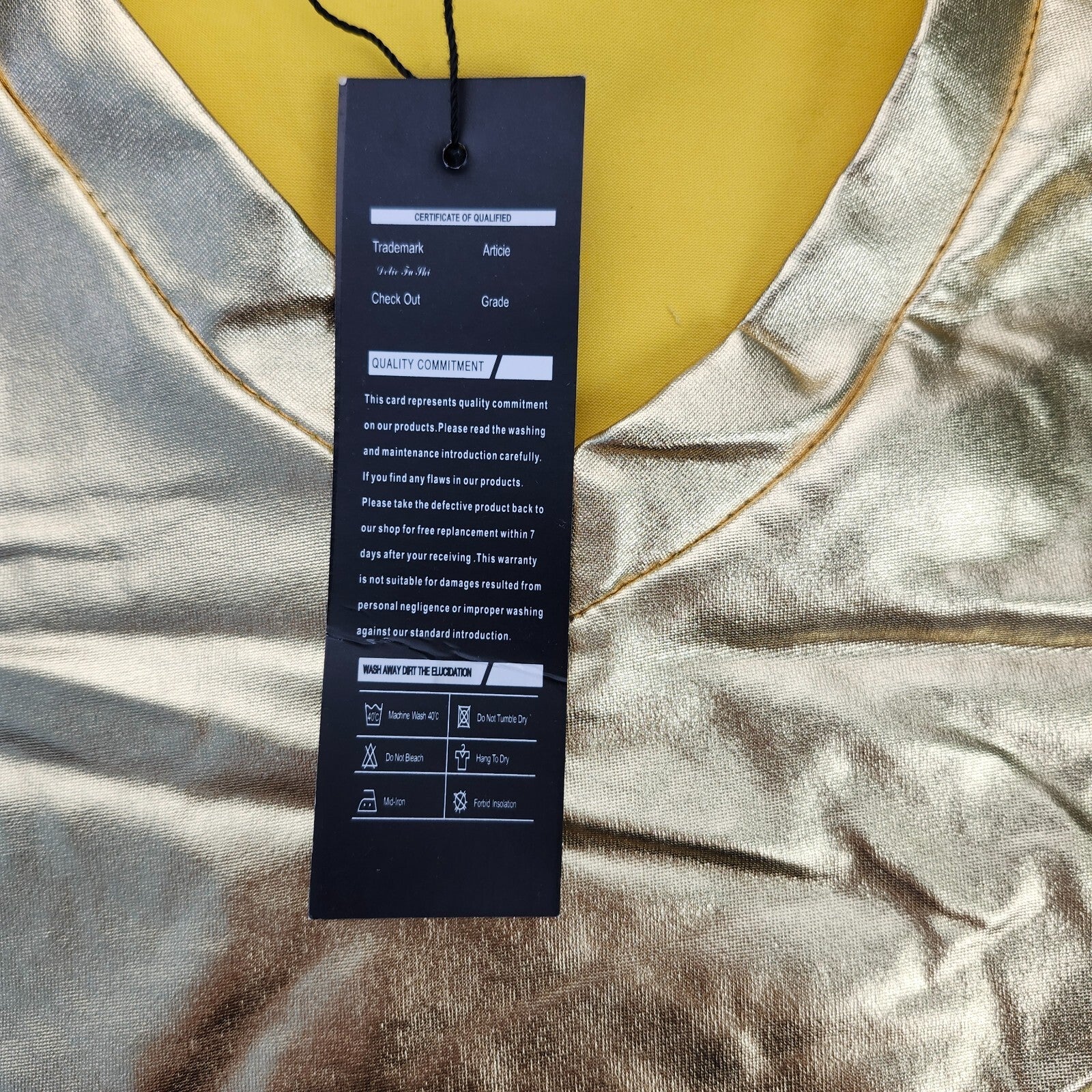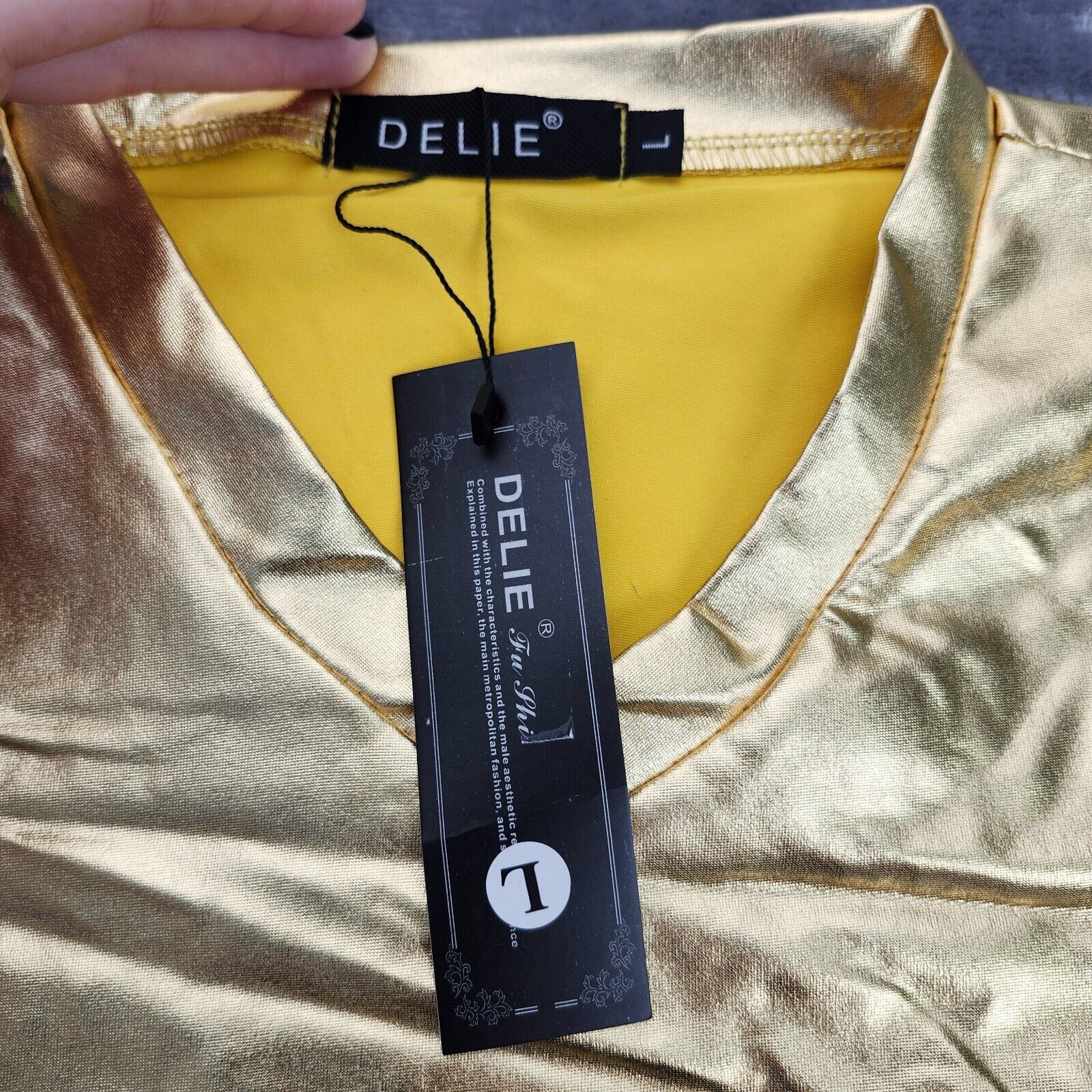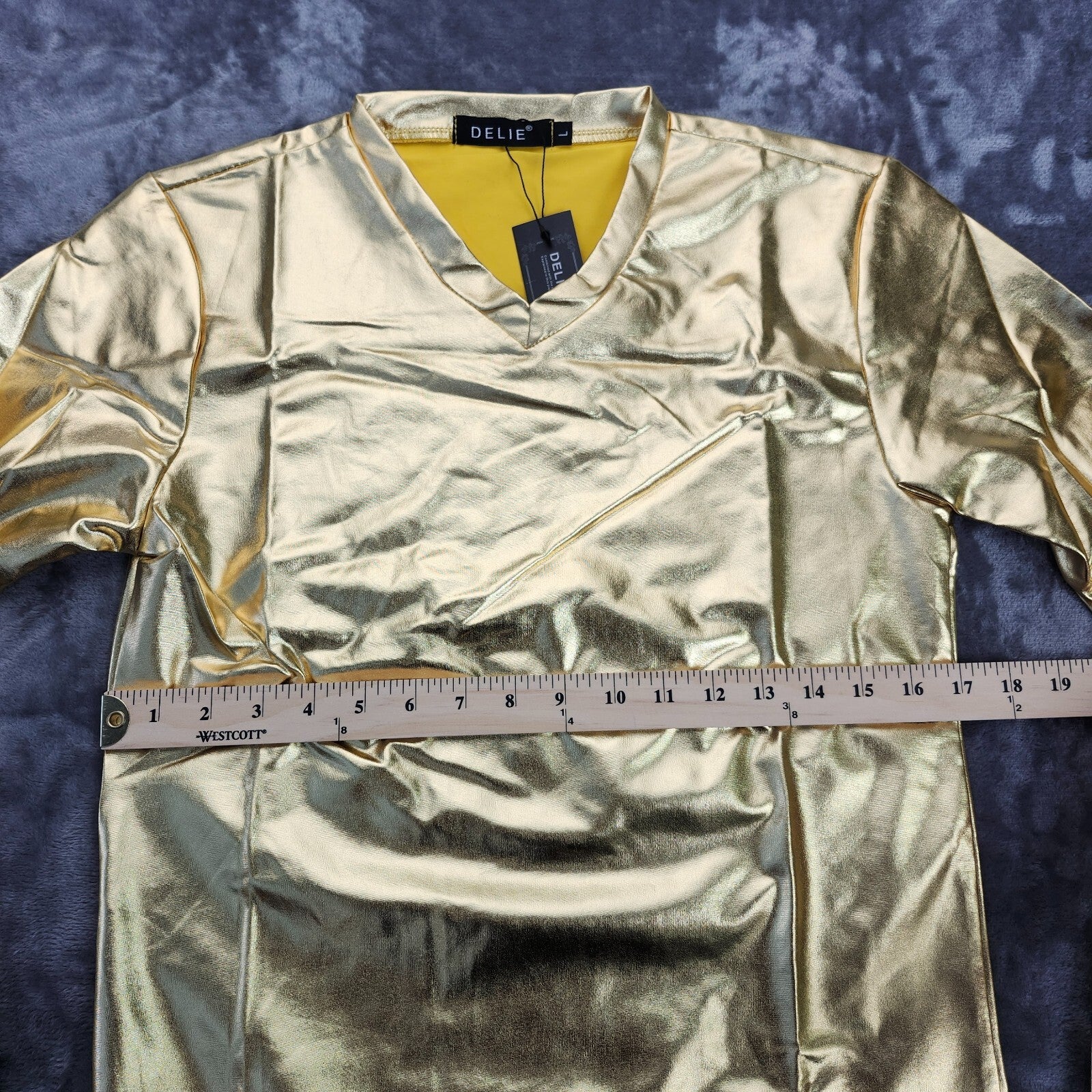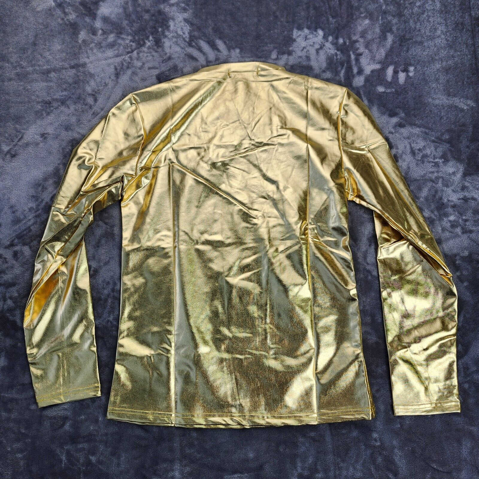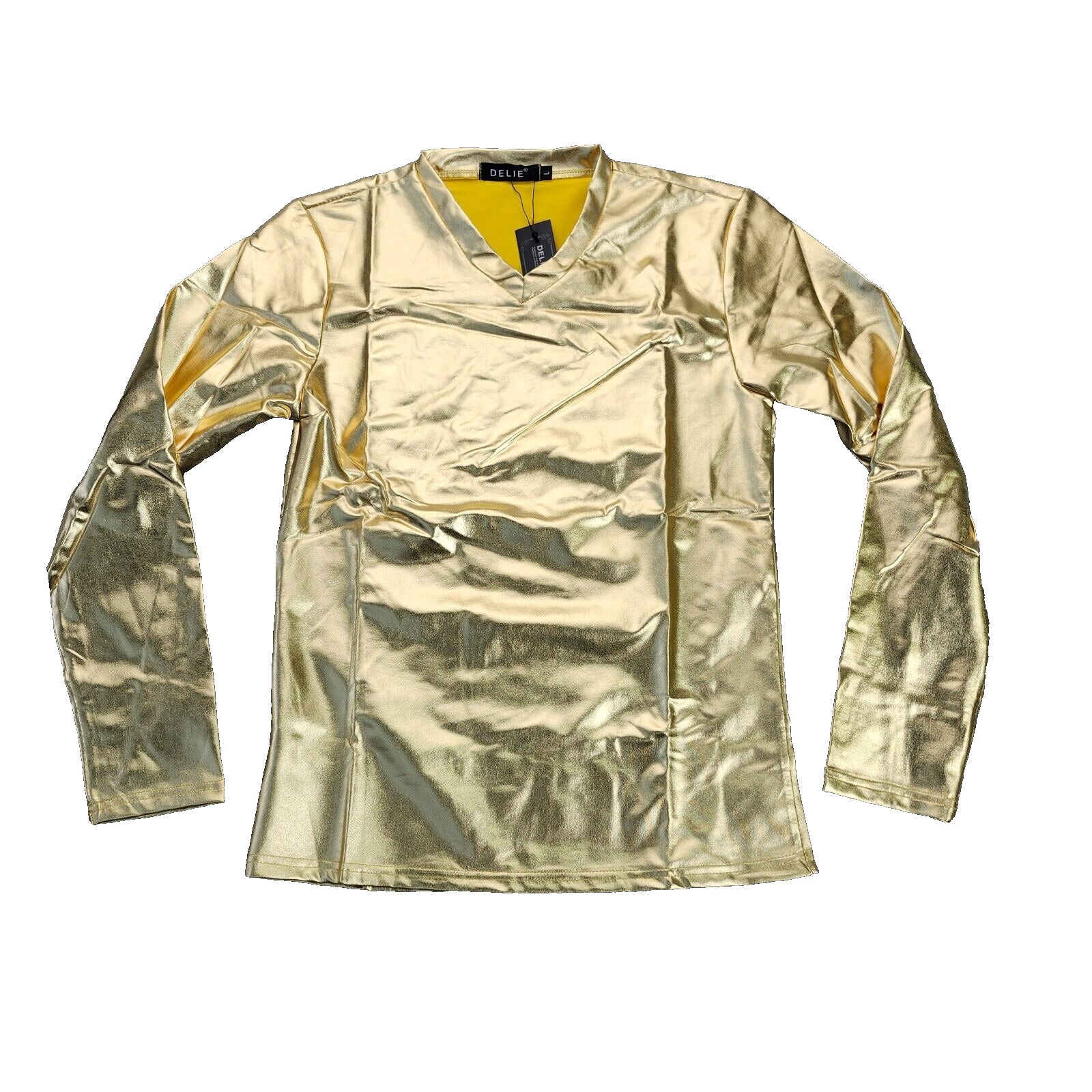 Men's Metallic T-Shirt Round Neck Long Sleeve Shining Disco Golden L