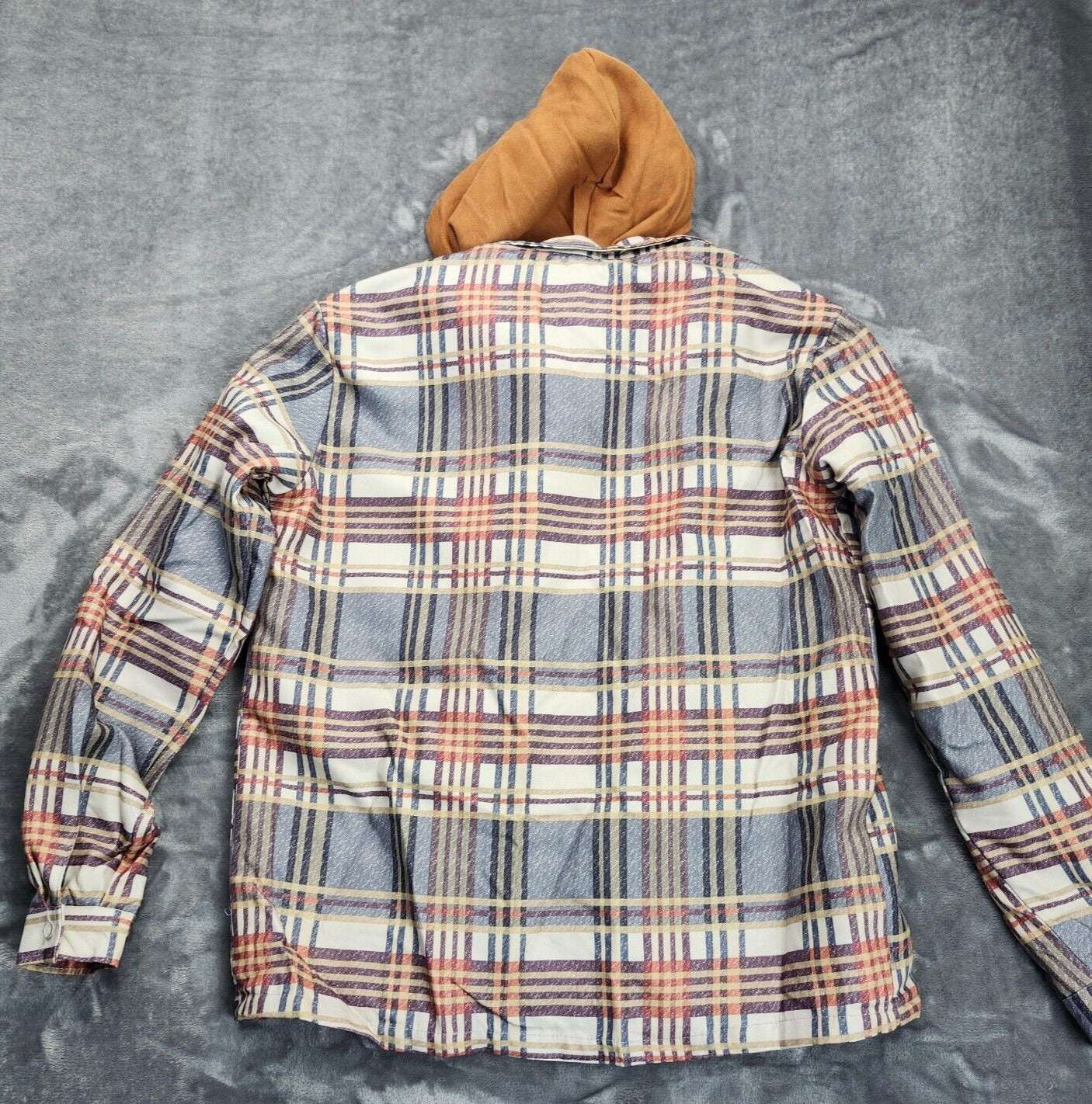 Men's Zip up Quilted Lined Button Down Plaid Jacket with Hood 2XL