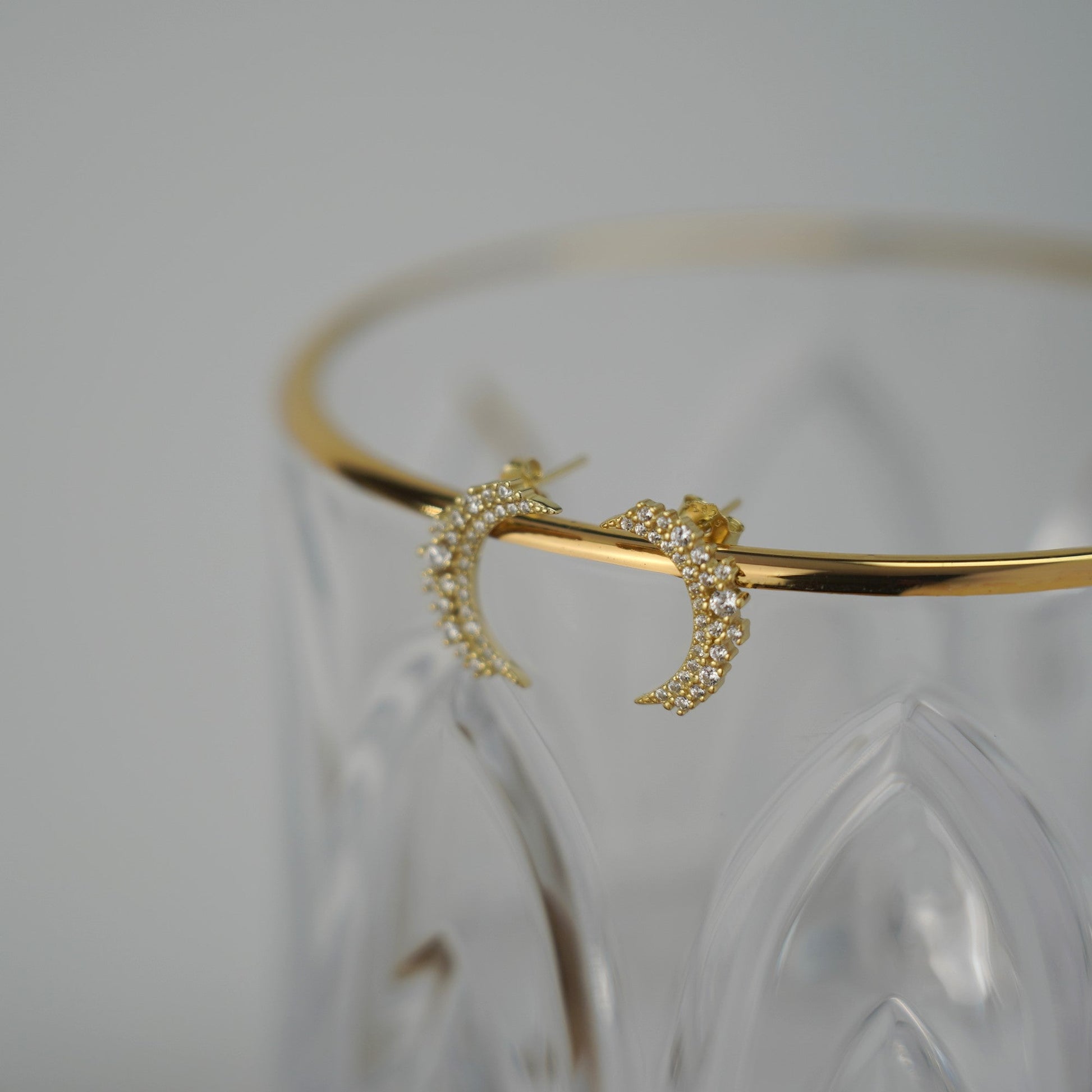 Moon Crescent 925S Silver Earrings | Shine Crescent Stud Earrings