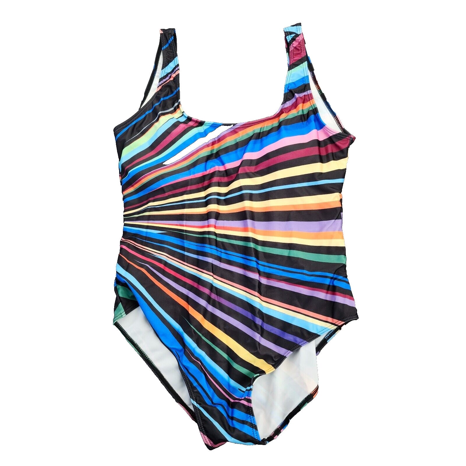 Plus Size One Piece Padded Swimsuit Womens Swimming Multicolor stripe 3XL