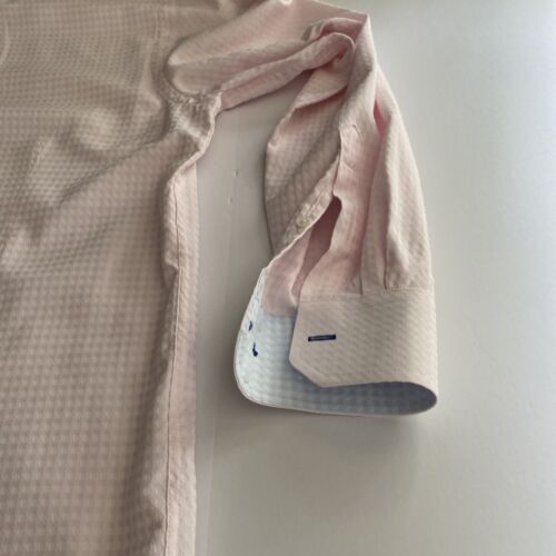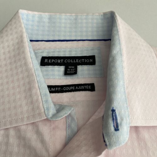 Report Collection Long Sleeve Button-down Dress Shirt Pink (blue Trim) Medium. Condition is Pre-owned. Shipped with USPS Ground Advantage.