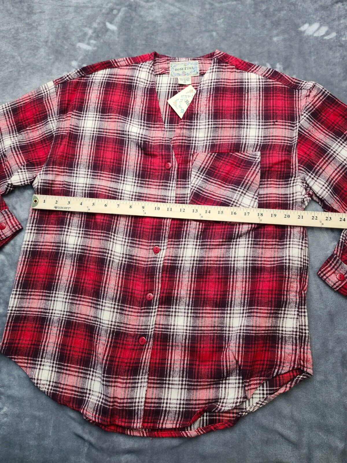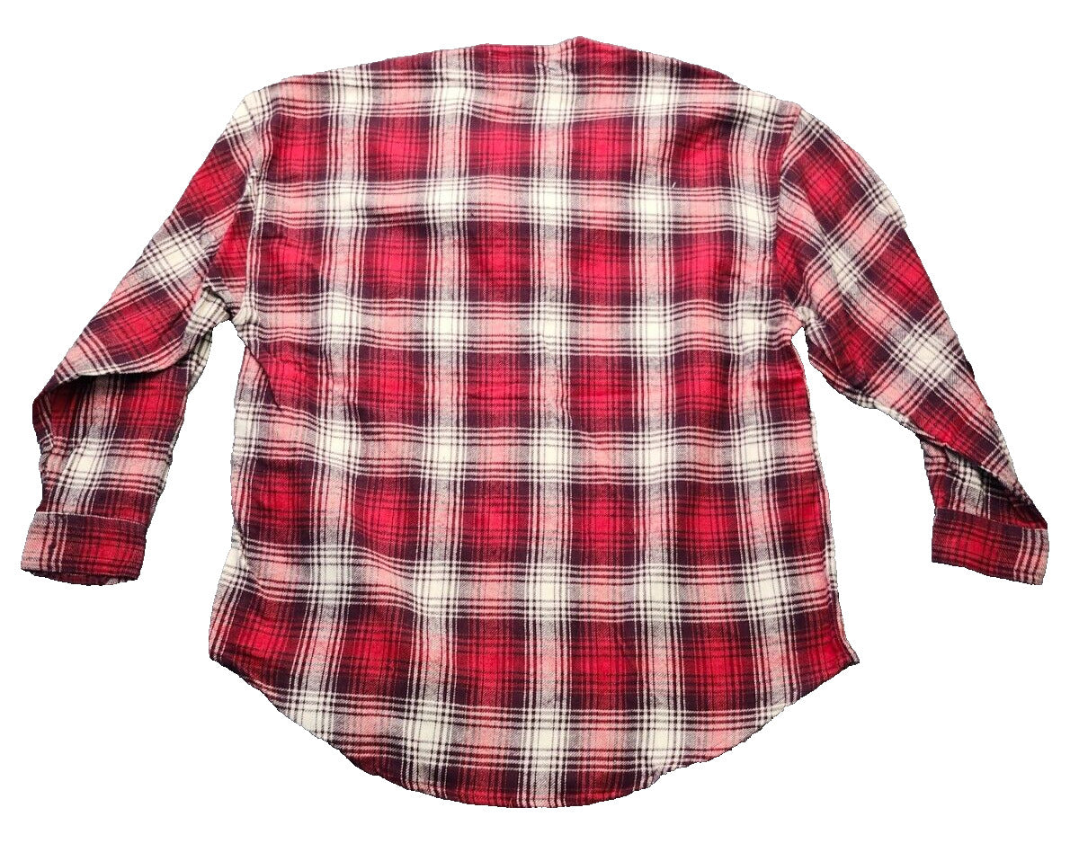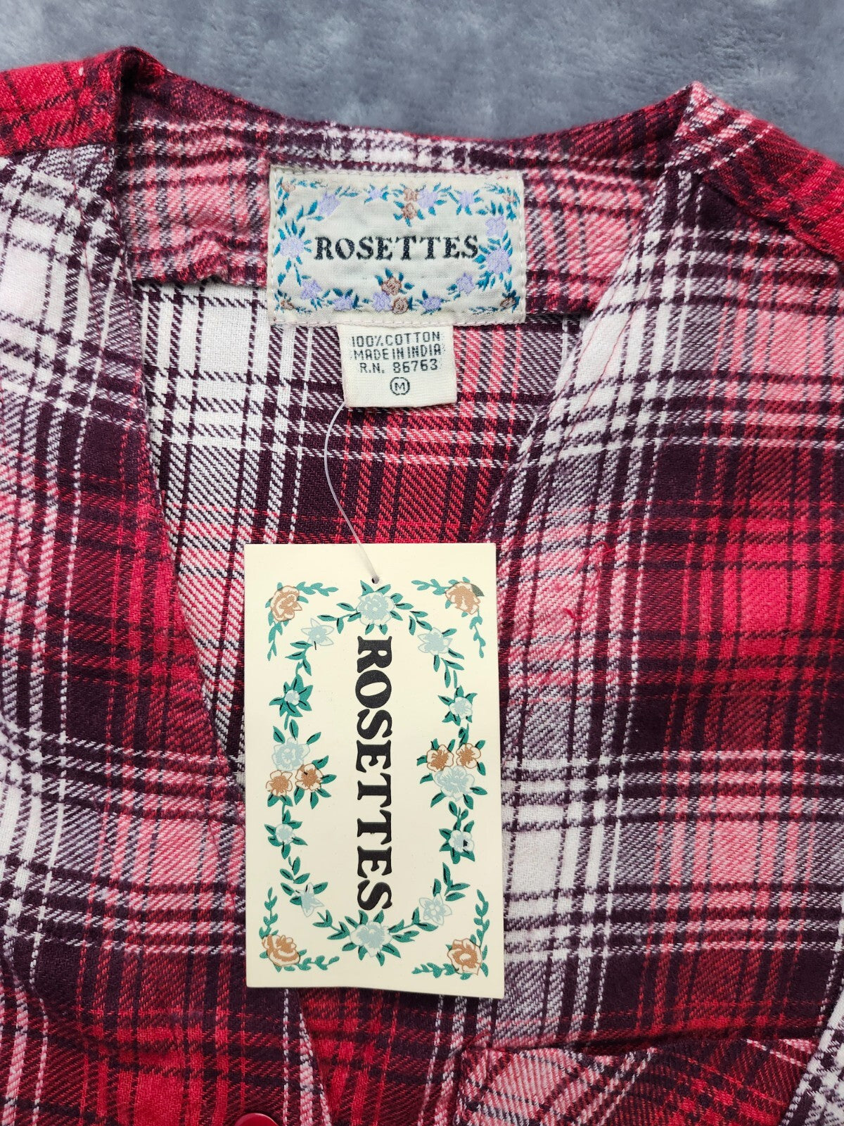 Rosettes Long Sleeve Button Up Flannel Women's Medium Plaid Red