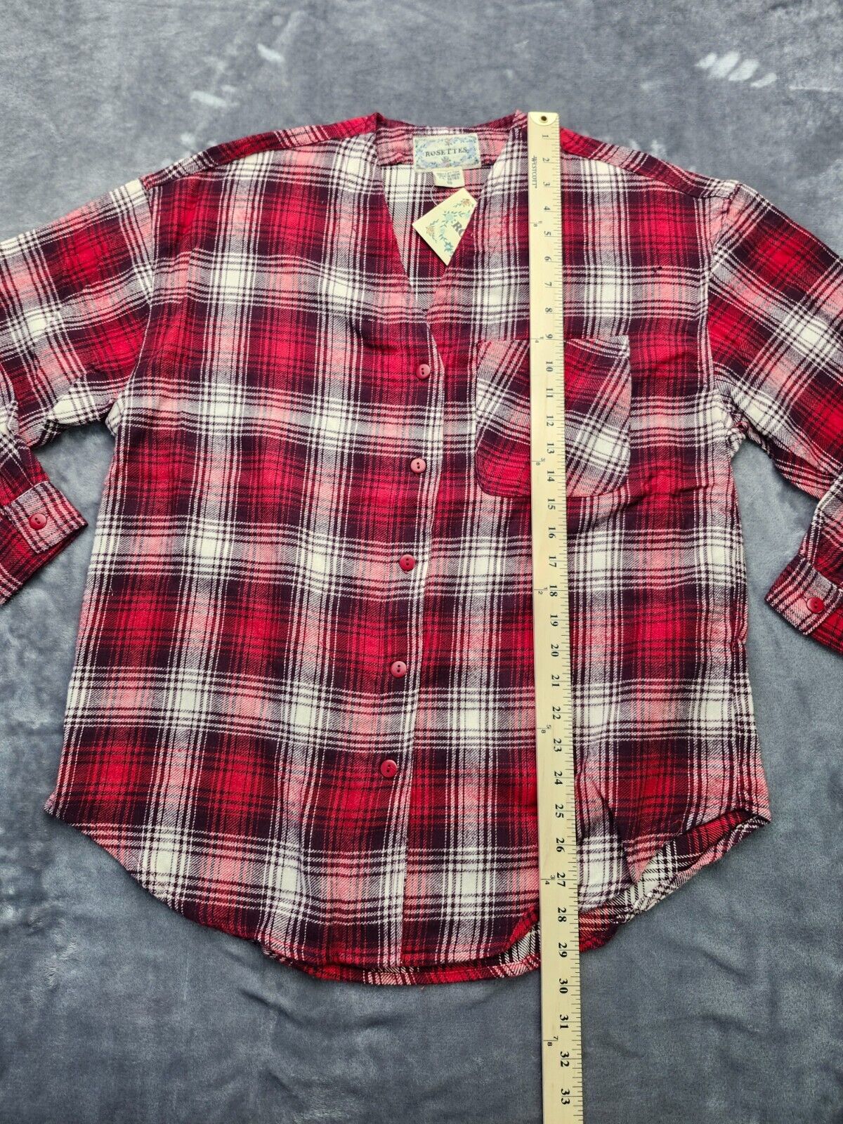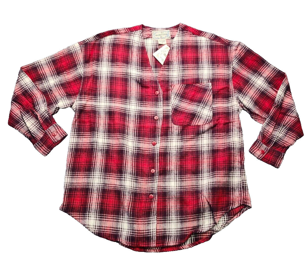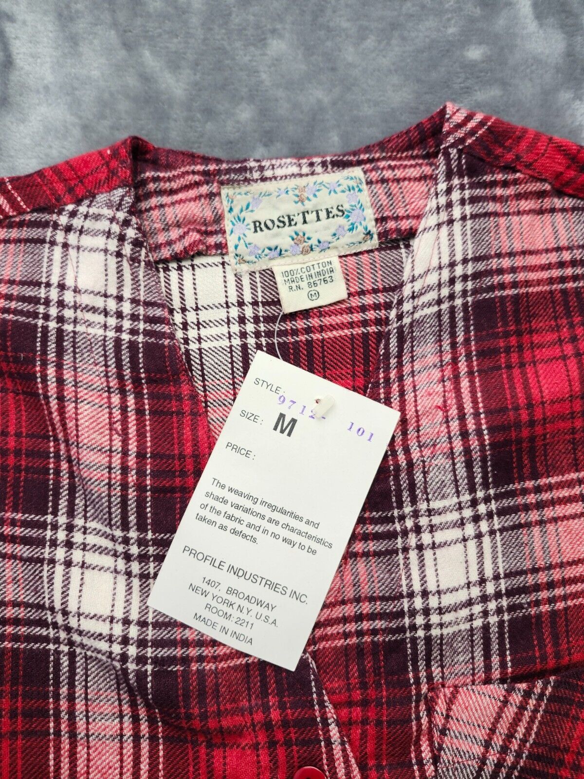 Rosettes Long Sleeve Button Up Flannel Women's Medium Plaid Red