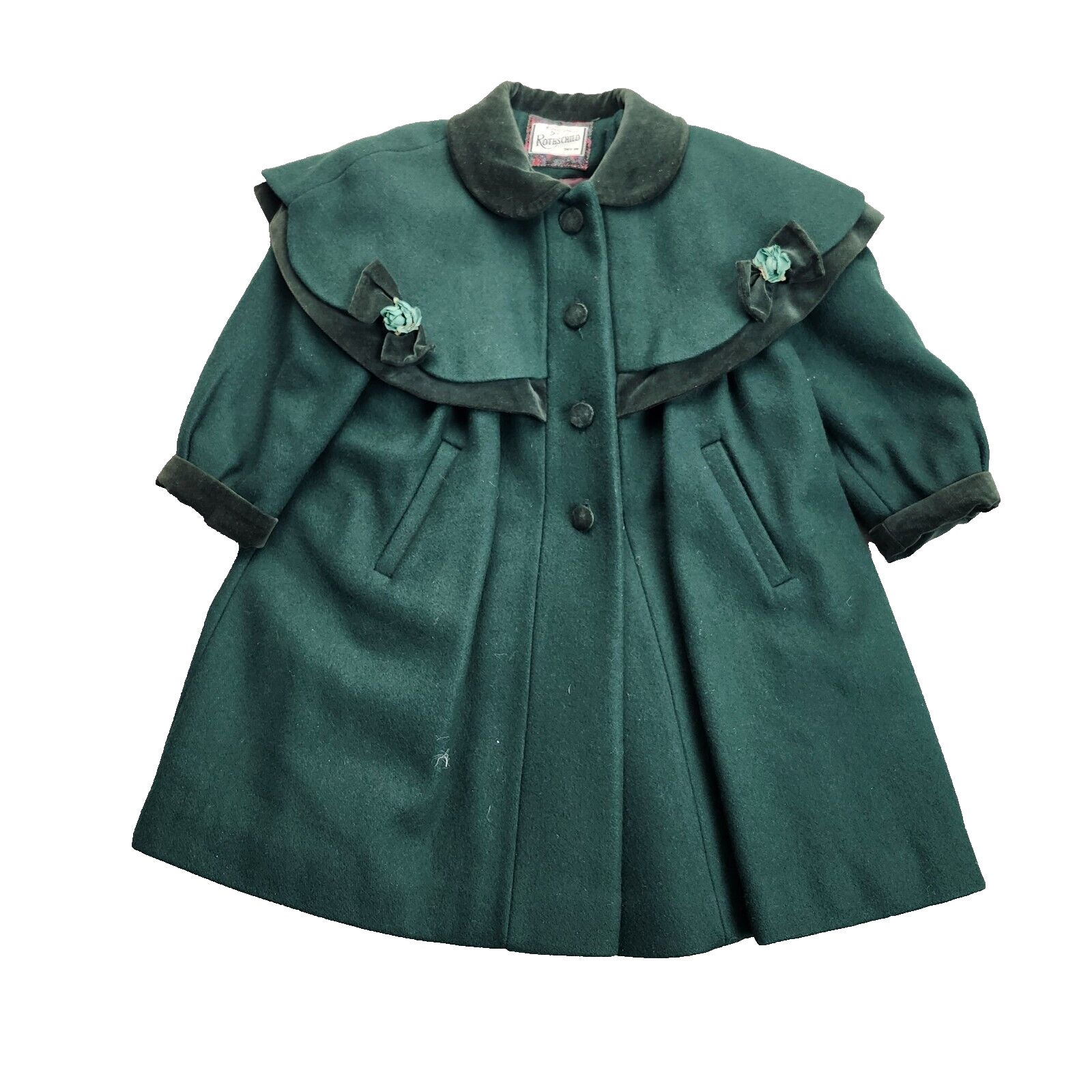 Rothschild Girls' Green Wool Blend Dress Coat with Velvet Accents, Size 4