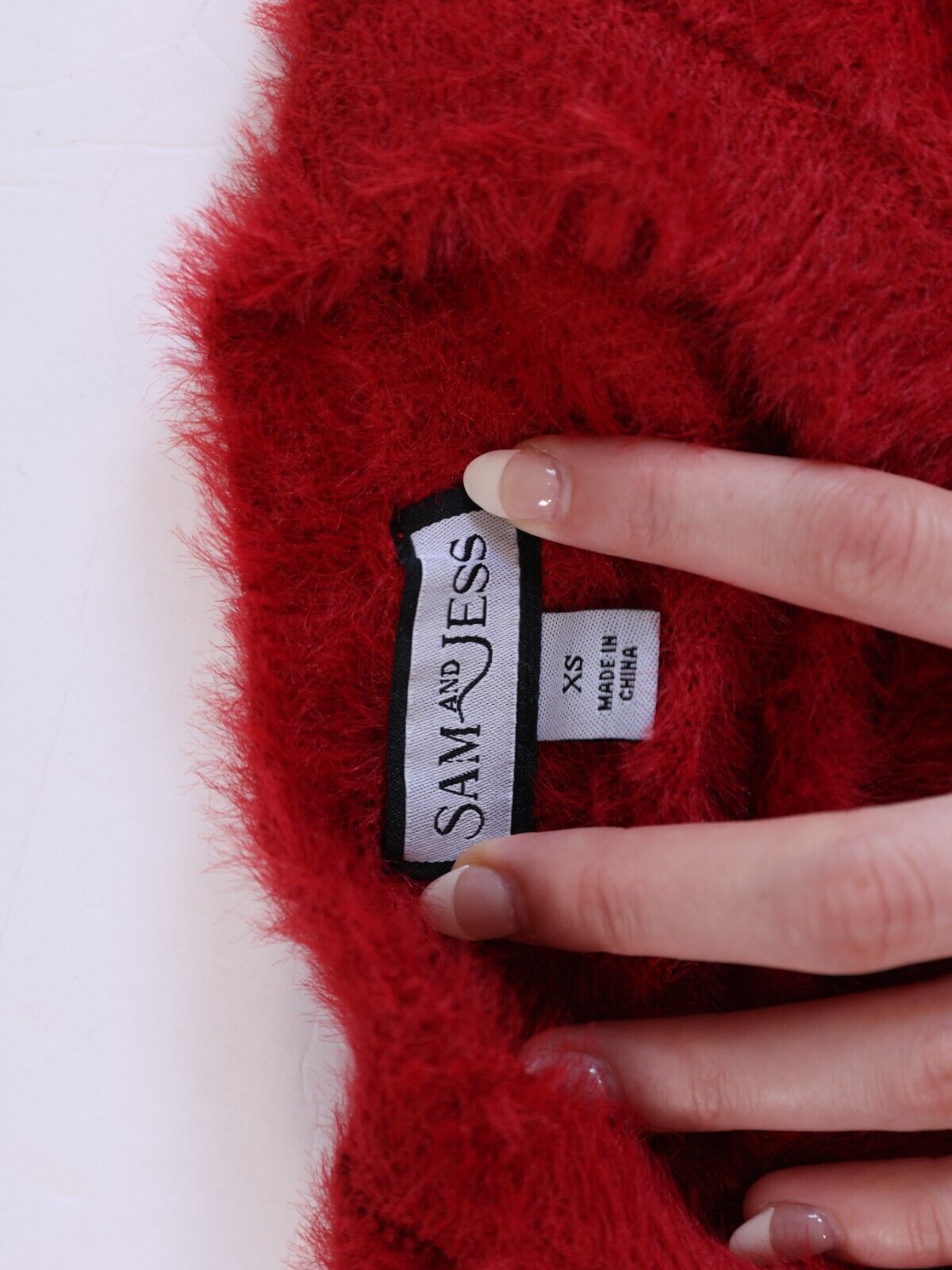 Sam And Jess Womens Sweater Pullover Comfort Fuzzy Long Sleeve Top Red Size XS