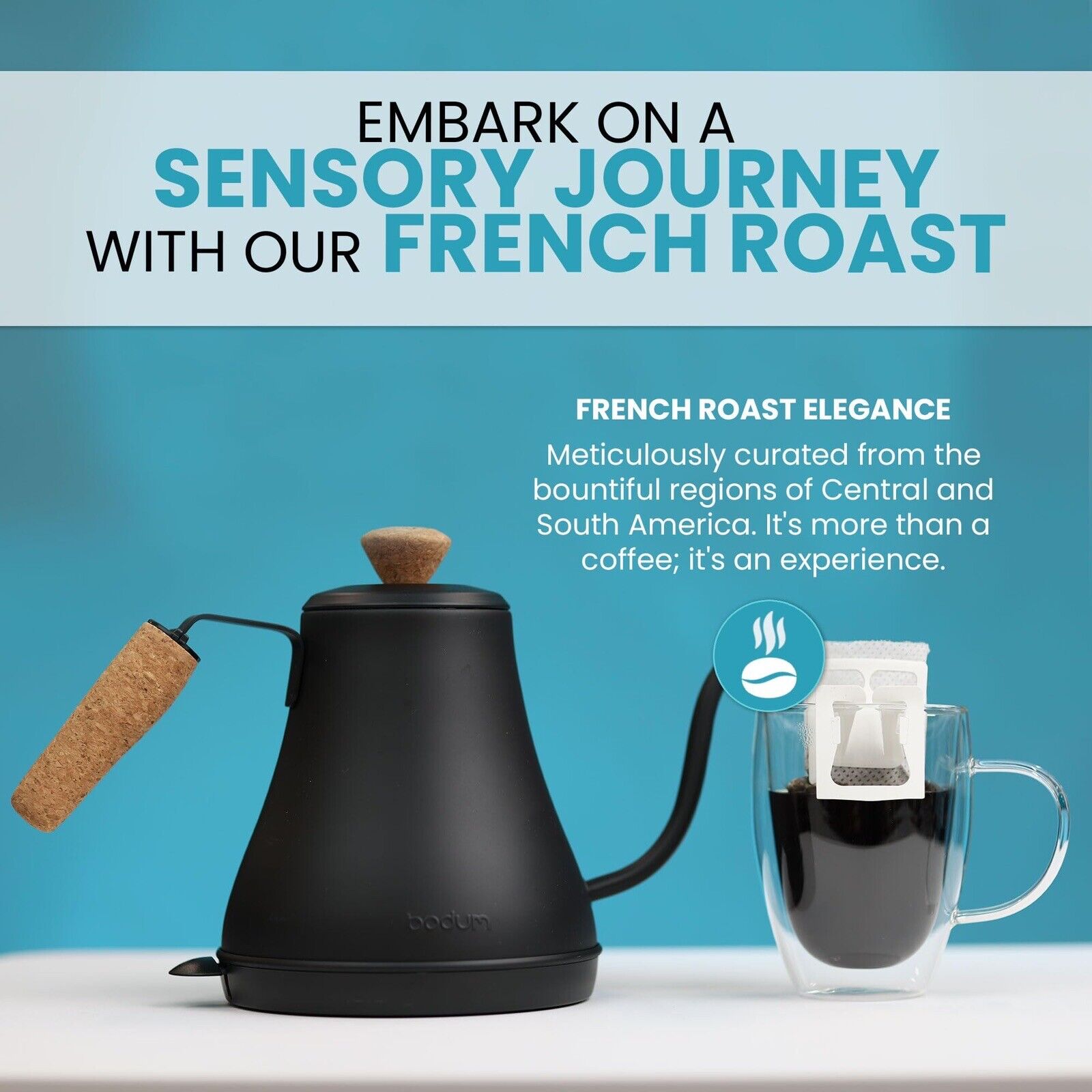 - Intense Dark Roast Perfection: Unleash the bold, robust flavors of molasses, simple chocolate, and a hint of smokiness in every sip. Our French roast, sourced from Central and South America, promises a gourmet coffee experience like no other.