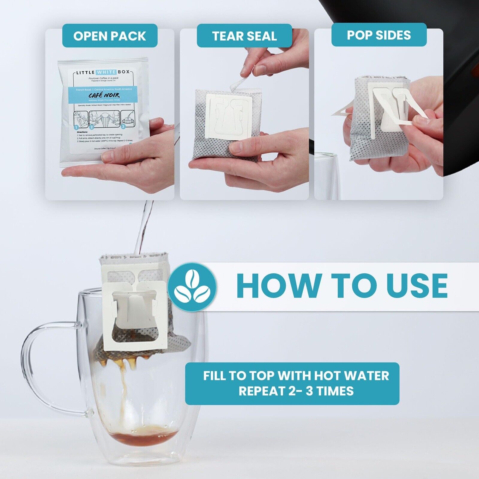 - Brewing Simplicity: Enjoy the gourmet experience without the fuss. Our easy-to-use pouches require no setup, no equipment, just hot water and a desire for premium coffee. Perfect for those who crave quality without compromise.