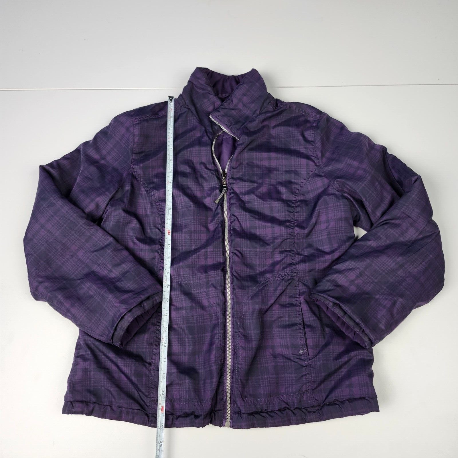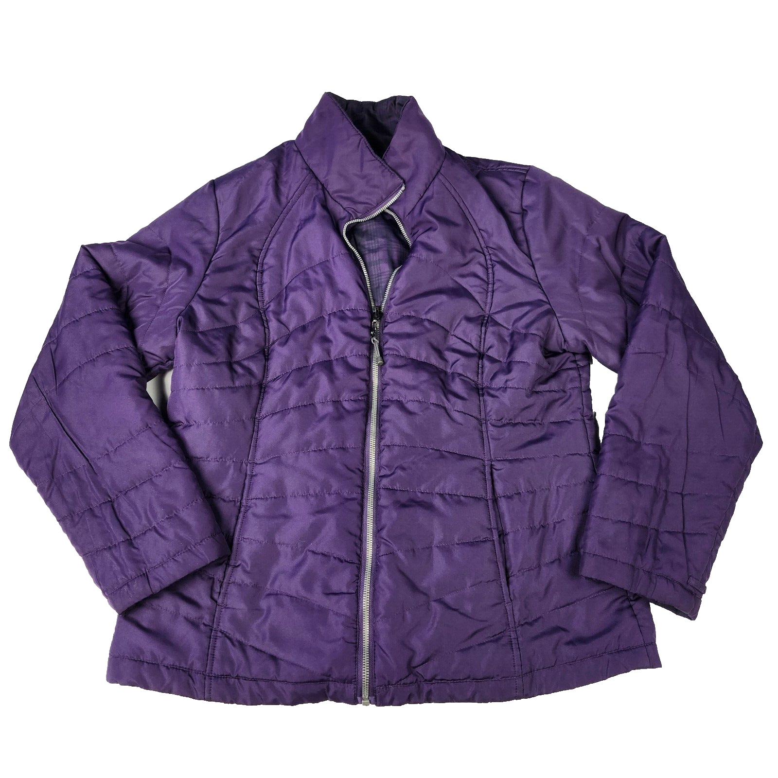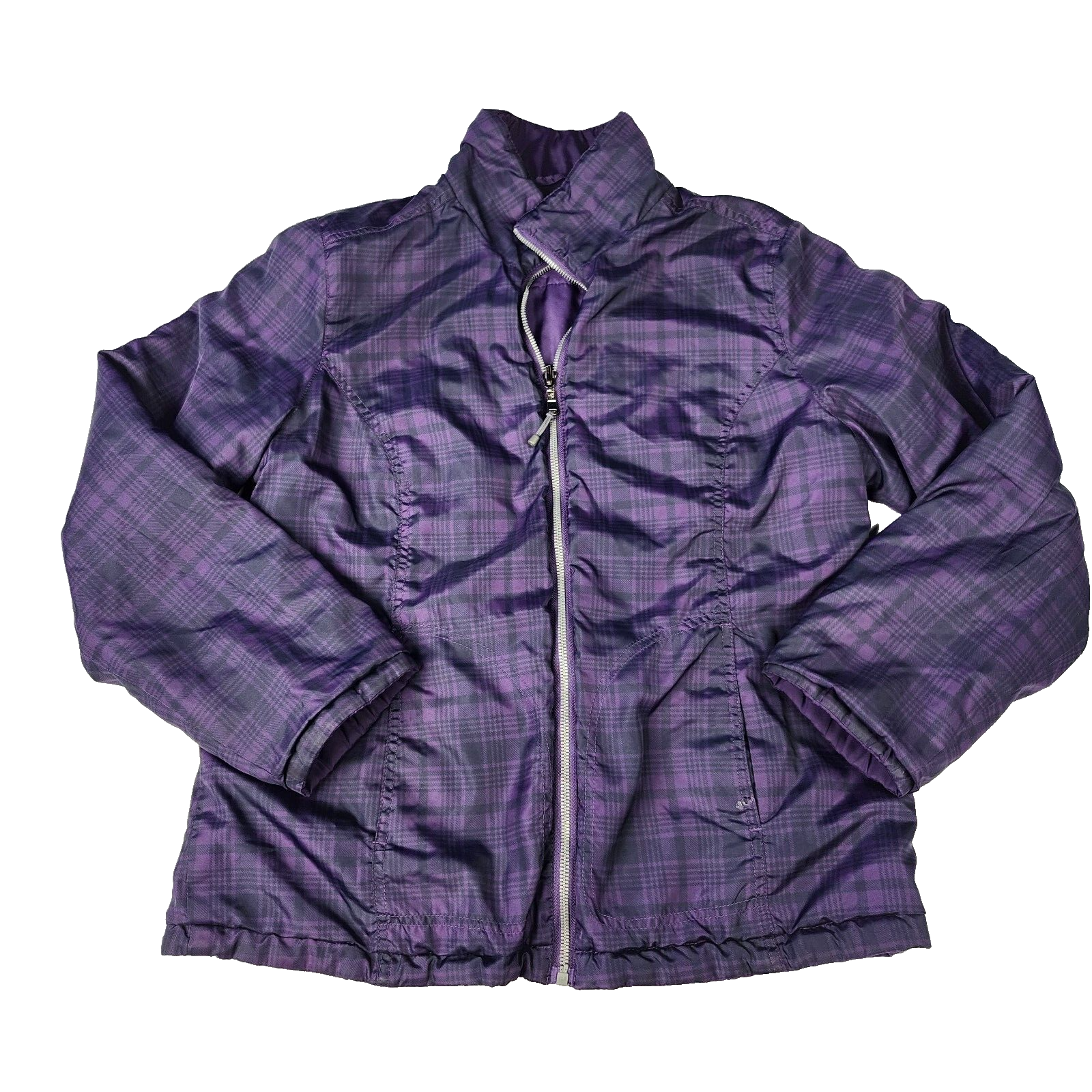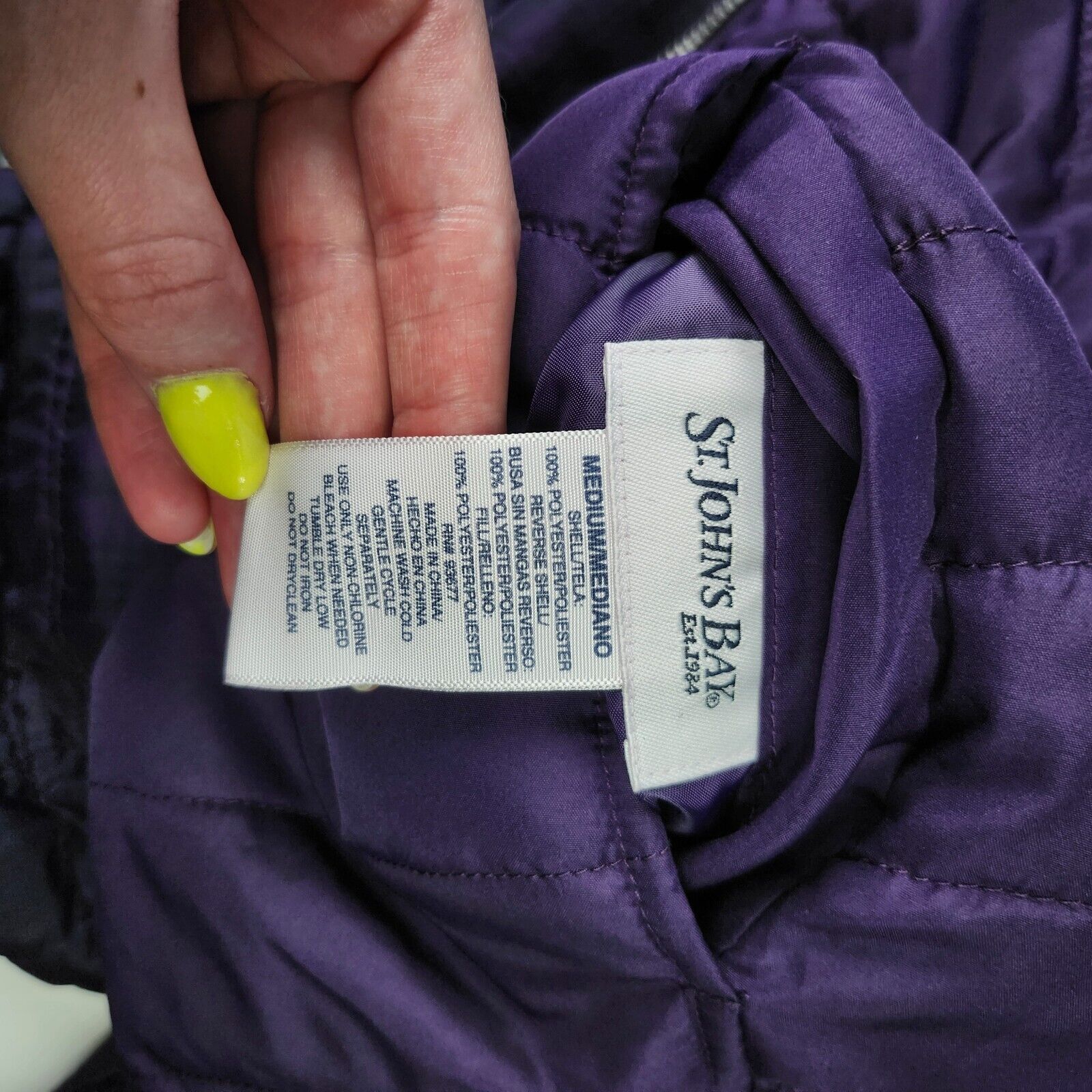 st johns bay womens reversible jacket purple solid/plaid size Medium