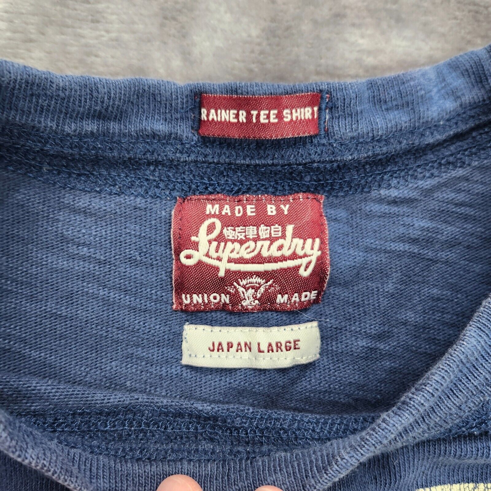 superdry jpn Blue Rainer Tee Shirt 100% Cotton Japan Large