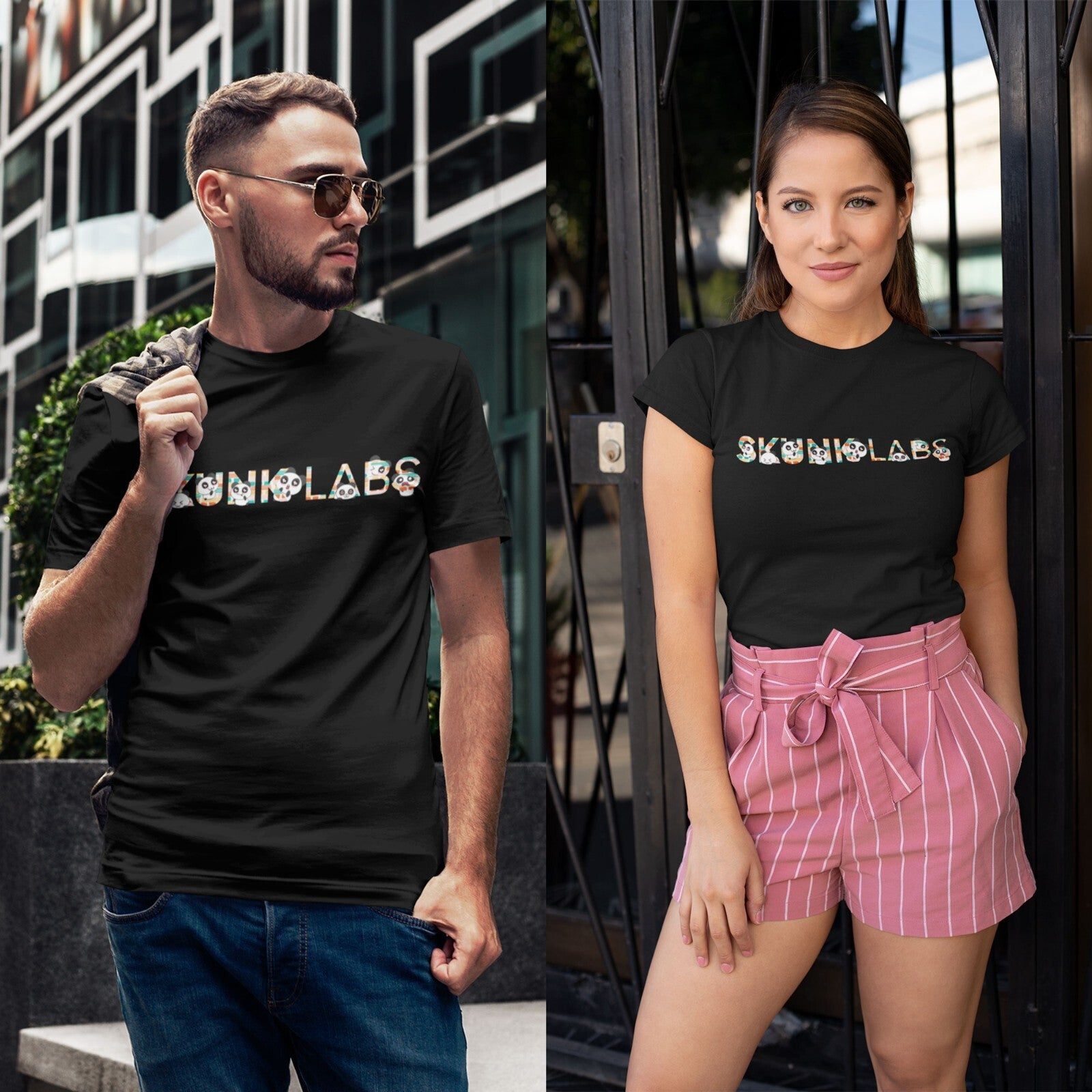 T Shirt for Entrepreneurs Cotton T Shirt by The Skunk Labs Logo with Pandas