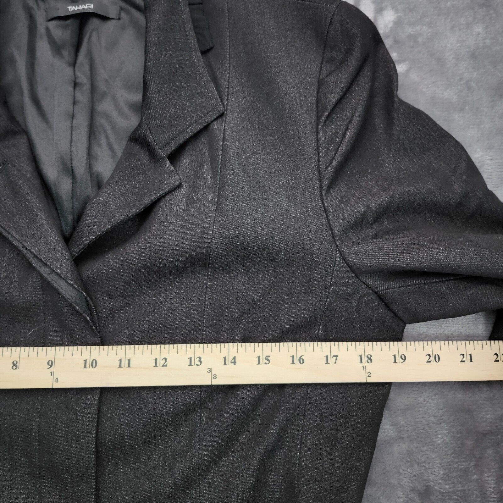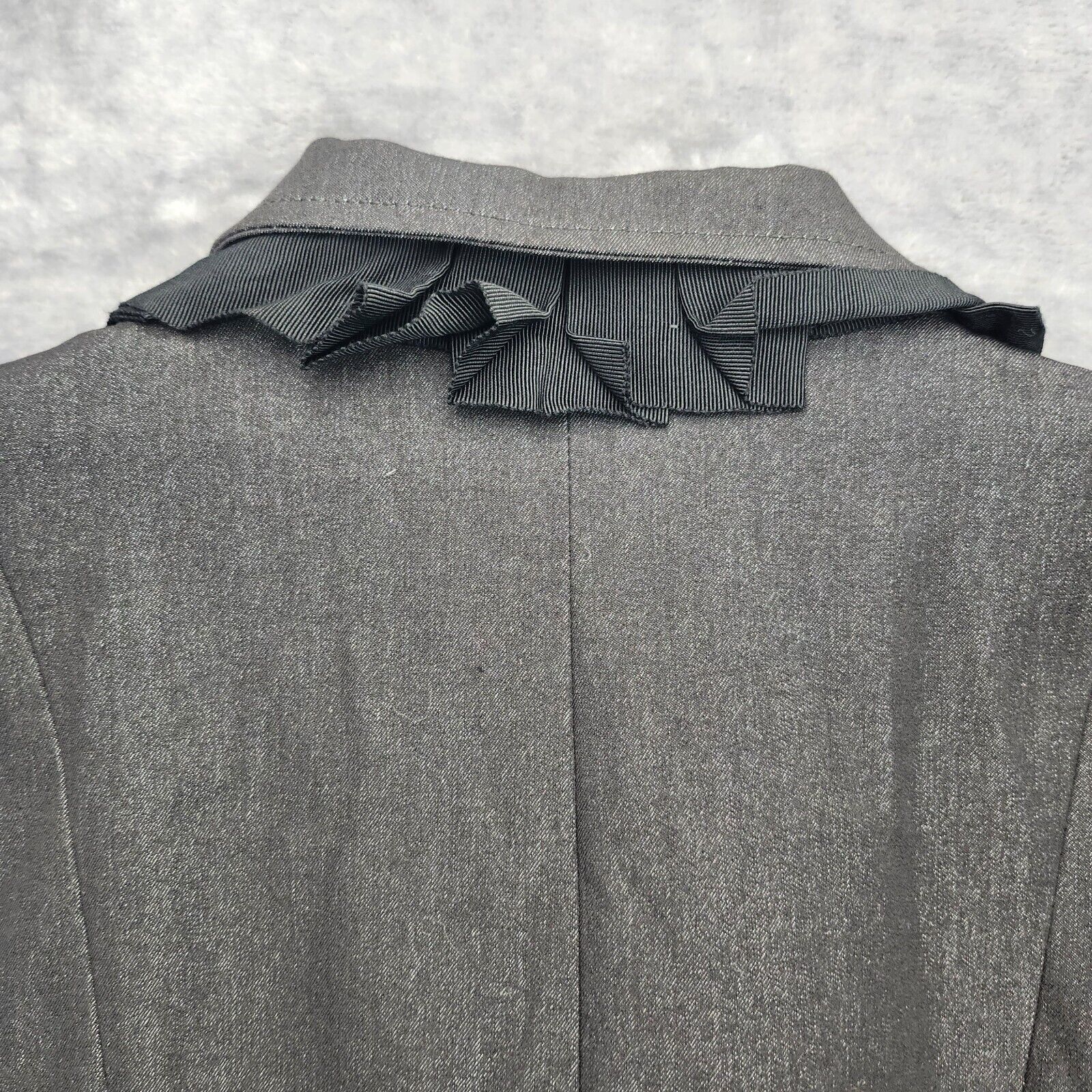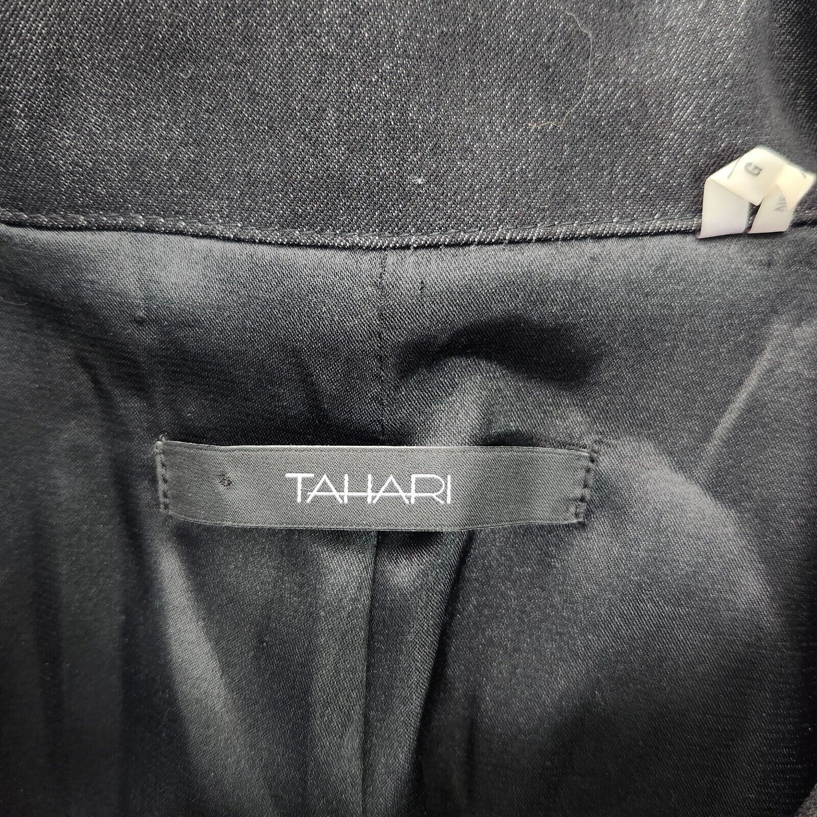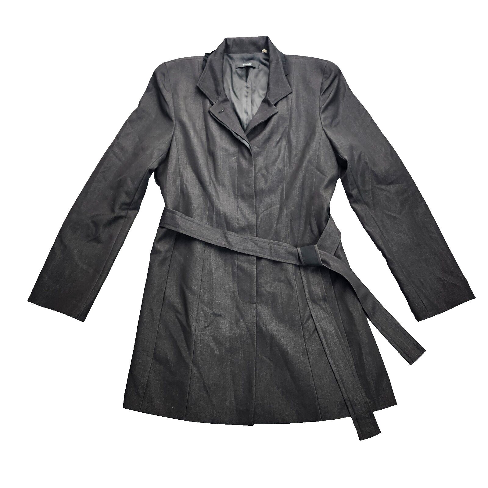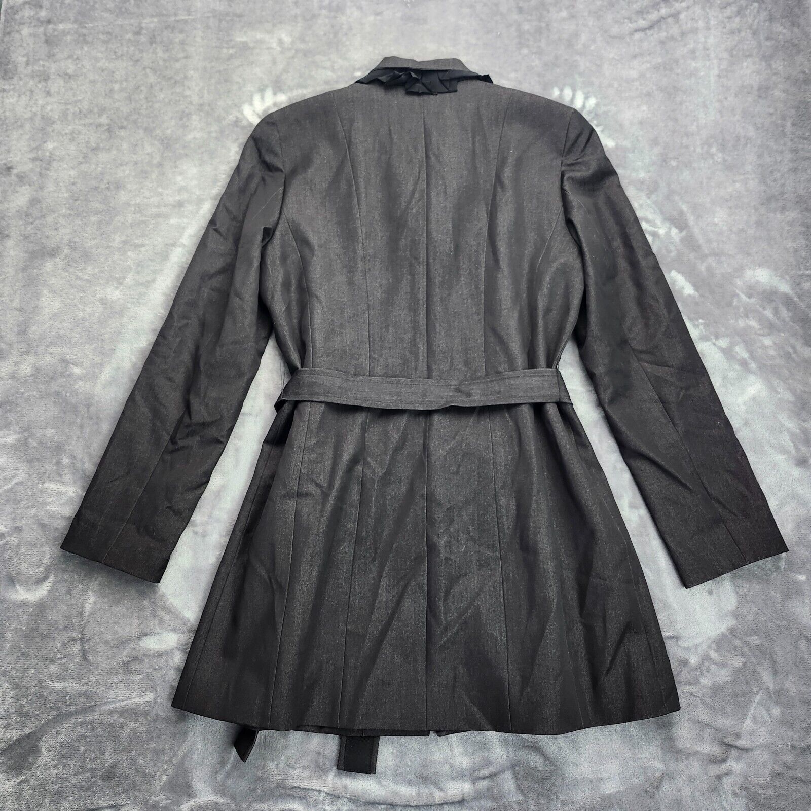 Tahari Stretch Belted Dress Coat Jacket Parka Top w/ Ruffled Collar Black Large