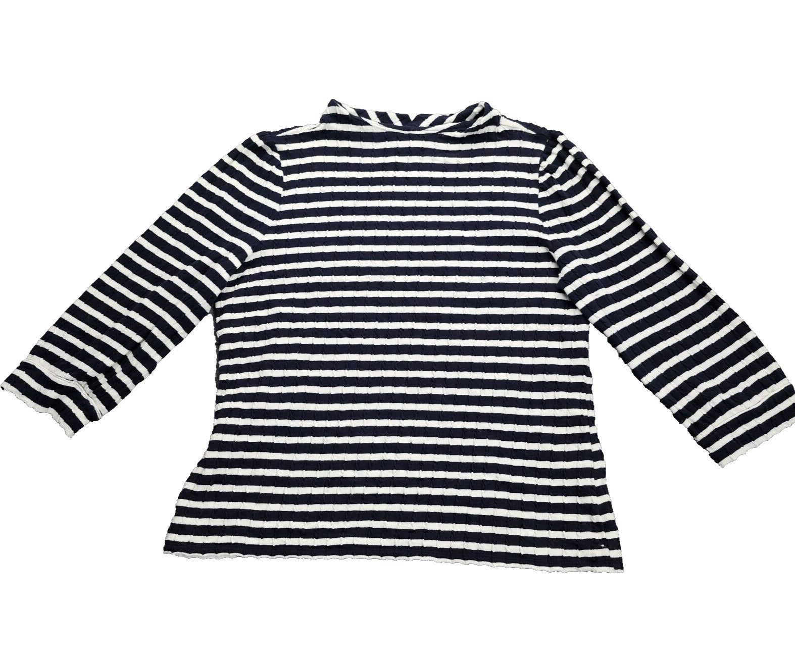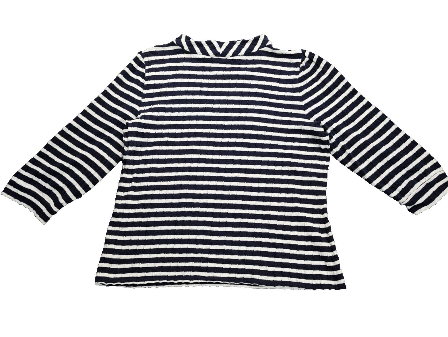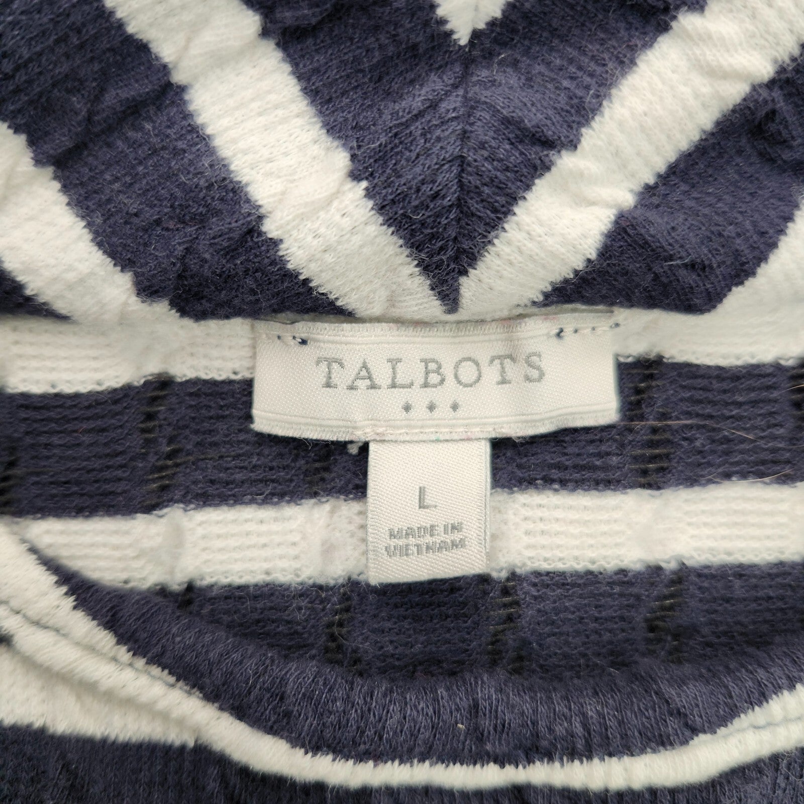 TALBOTS BLUE WHITE STRIPE JACQUARD 3/4 SLEEVE FUNNEL NECK PULLOVER PLUS Sz LG