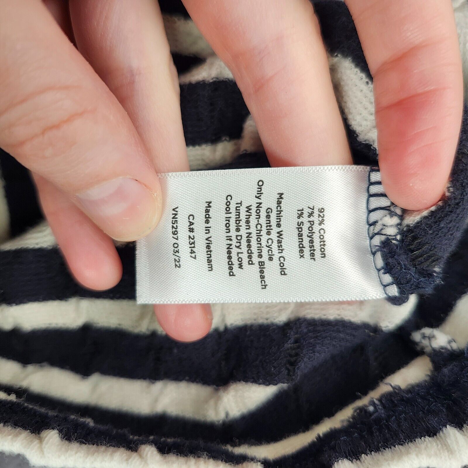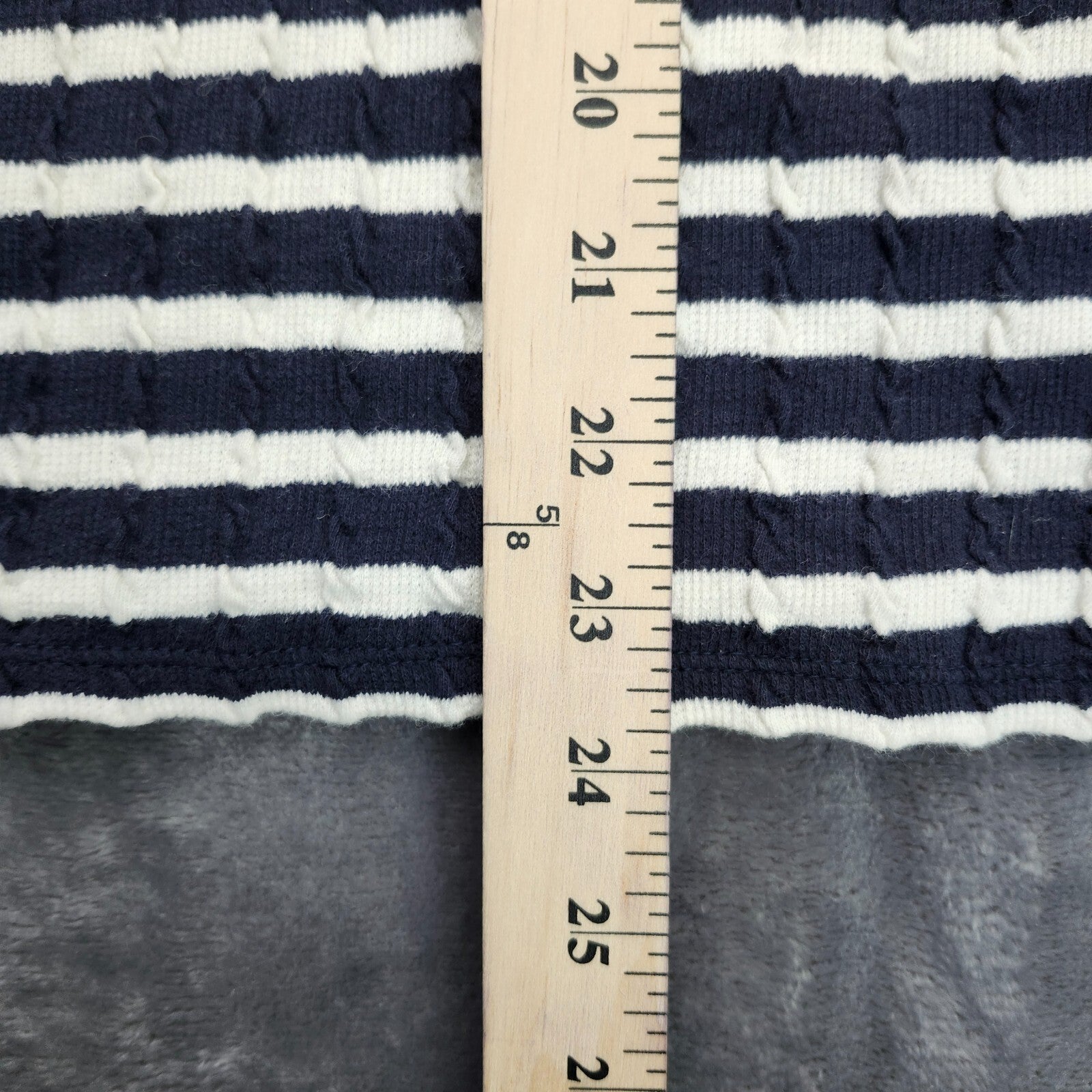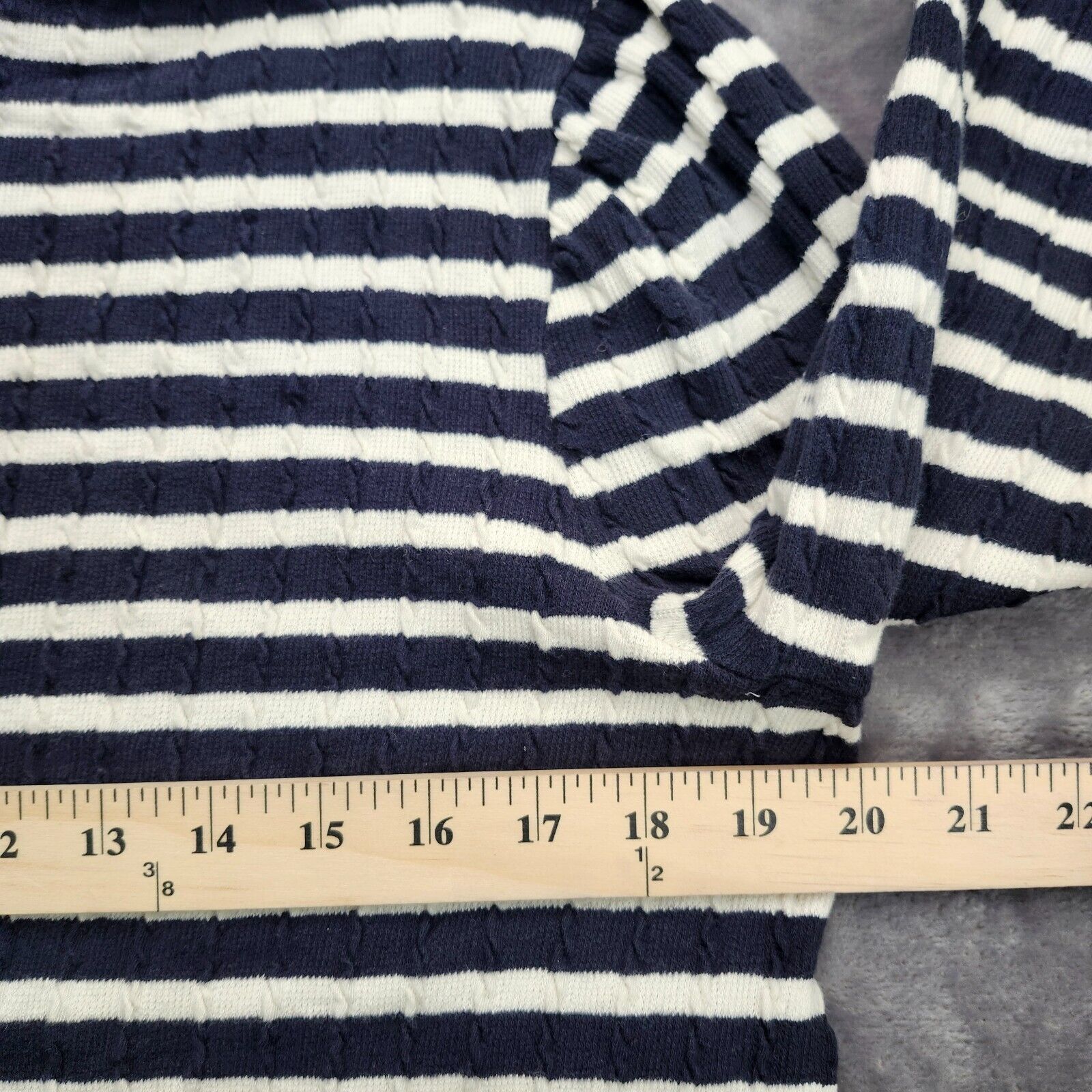 TALBOTS BLUE WHITE STRIPE JACQUARD 3/4 SLEEVE FUNNEL NECK PULLOVER PLUS Sz LG