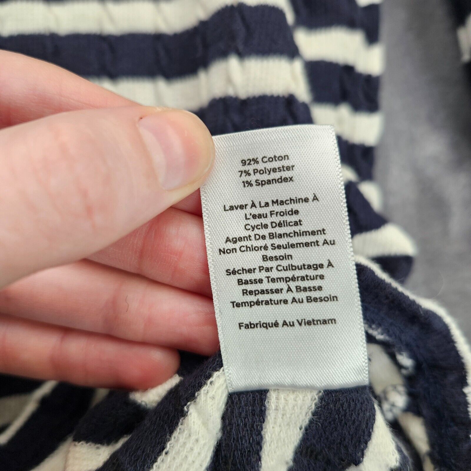 TALBOTS BLUE WHITE STRIPE JACQUARD 3/4 SLEEVE FUNNEL NECK PULLOVER Large