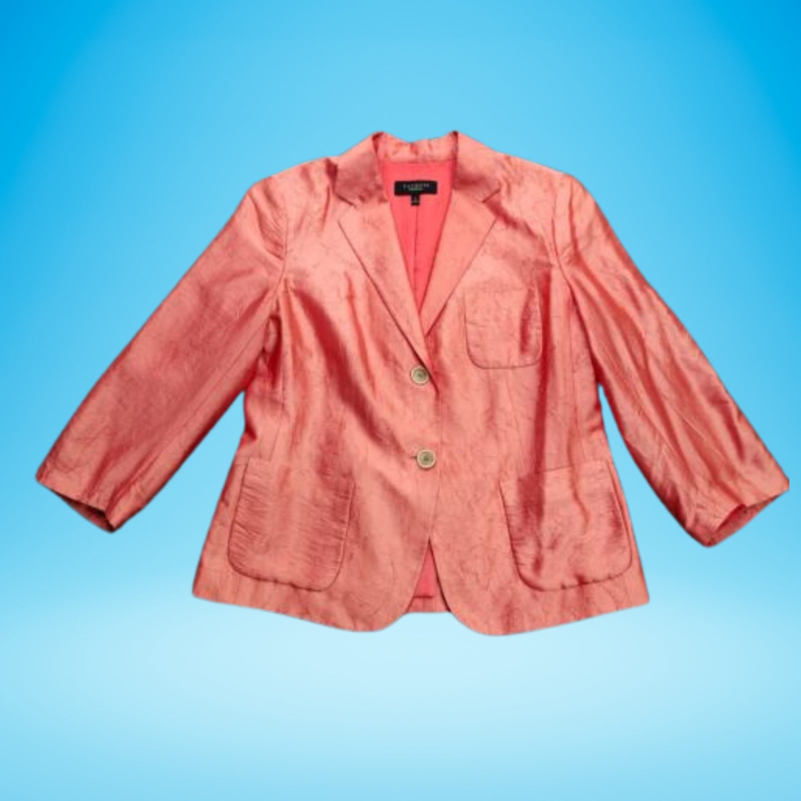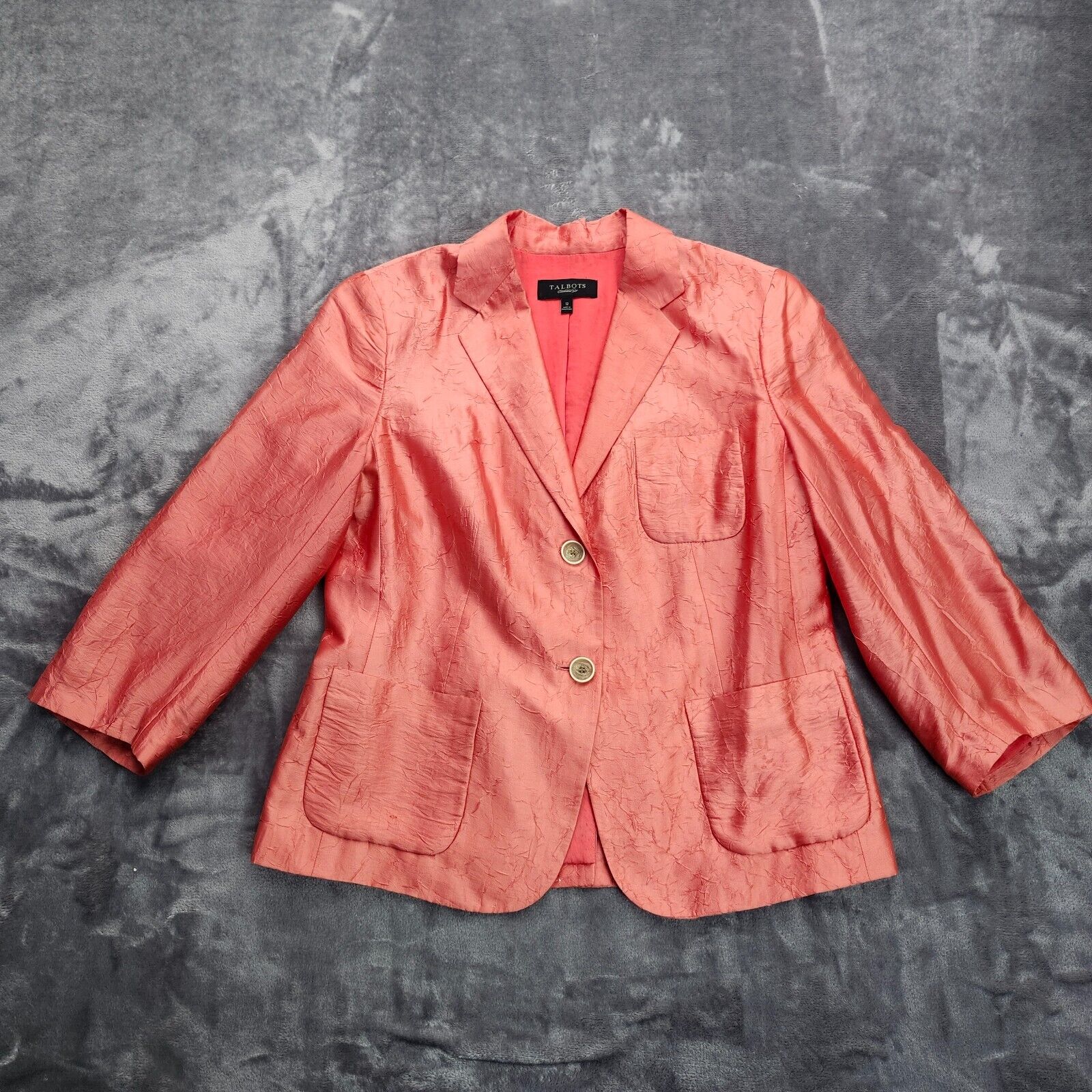 Talbots Sz 12 Spectacular Apricot Pink Orange Silk Lightweight Blazer Jacket