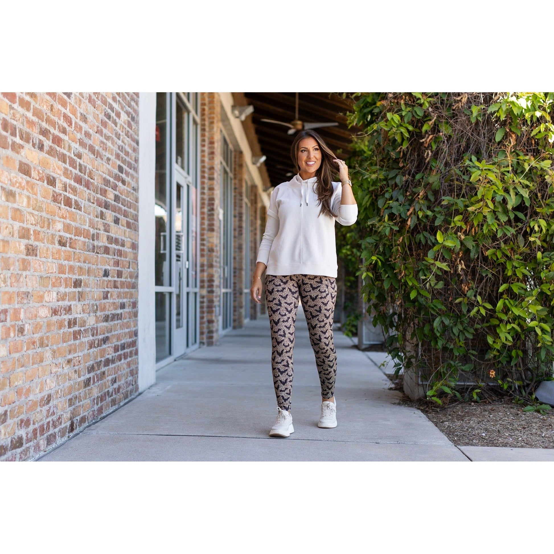 Unleash your wild side with our Bianca leggings featuring a fierce leopard bat print. Perfect for Halloween, they're also incredibly comfortable, making every outfit an unbeatable combination of style and coziness!
