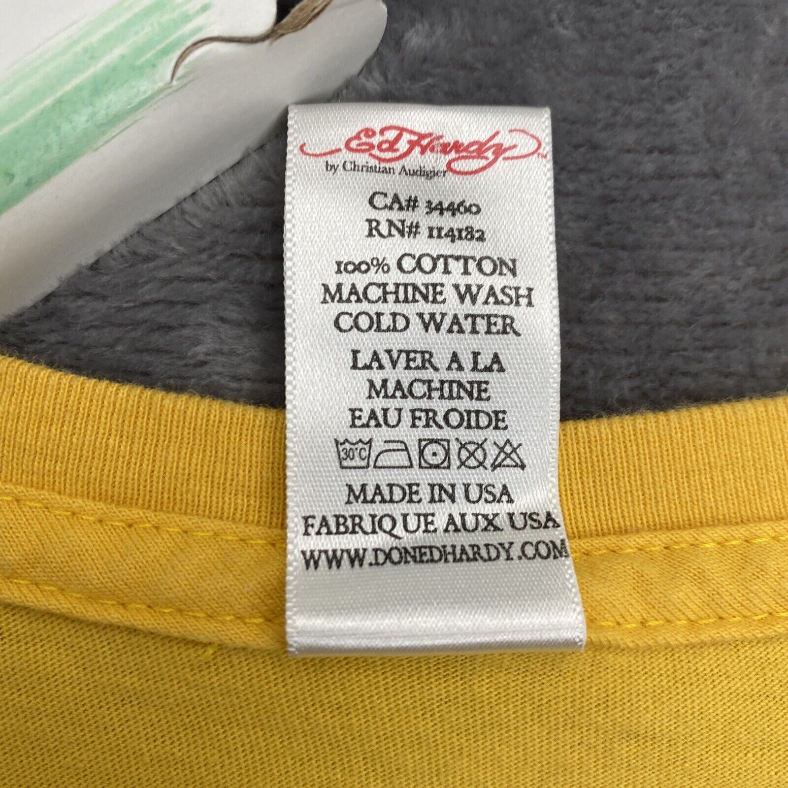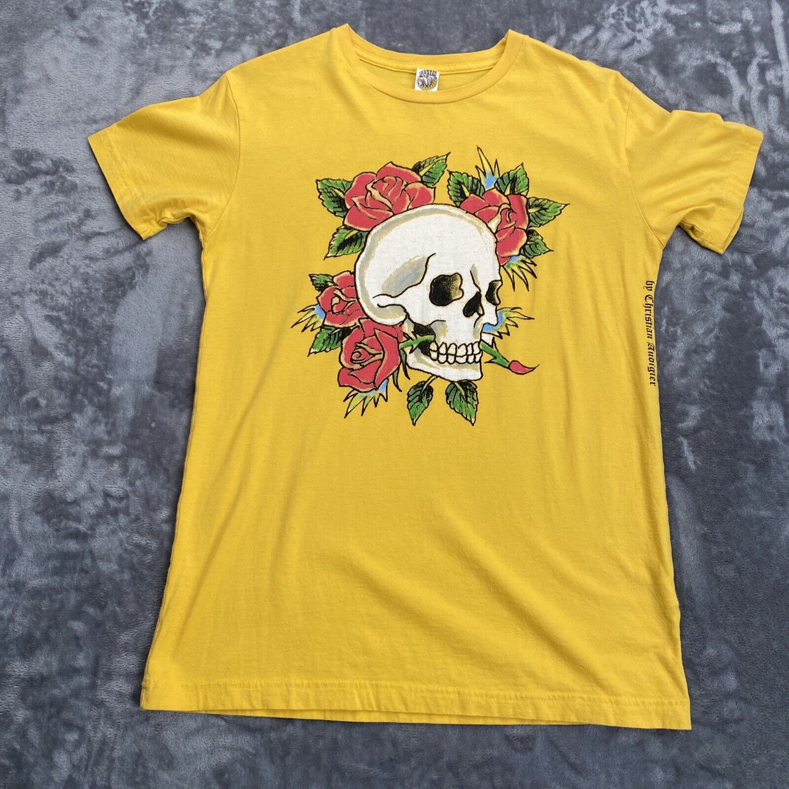VTG Ed Hardy Mens MED Yellow T Shirt Skull and Flowers Floral Christian Audigier