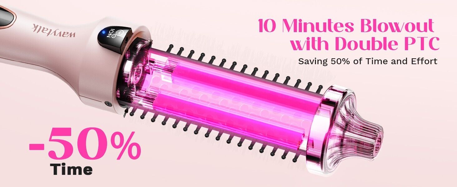 - Double Acceleration Styling: The Wavytalk 196 heated round brush features two PTC heaters, rapidly curling hair during brushing, saving 50% of time and effort. Streamline your daily routine: utilize the curling iron brush, eliminating the need for additional tools like combs or clips in traditional curling methods. Simplify the styling process for convenience and efficiency.