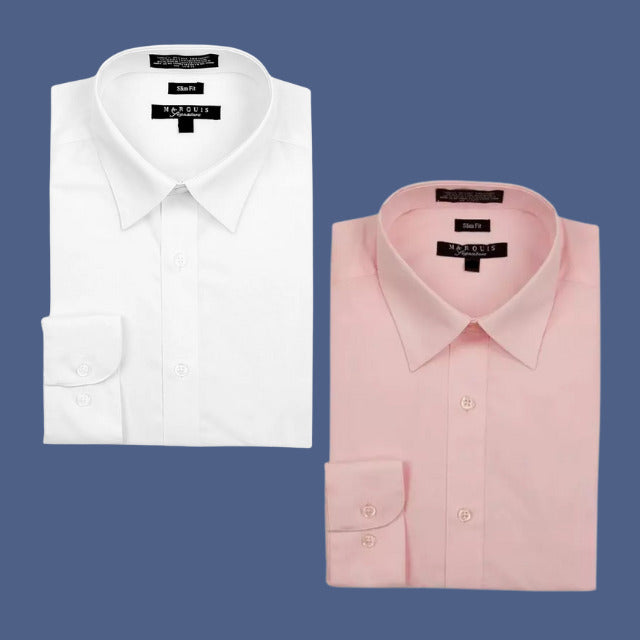 Marquis Signature Men's Long Sleeve Slim Fit Dress Shirt PINK 15 / 15.5 32/33