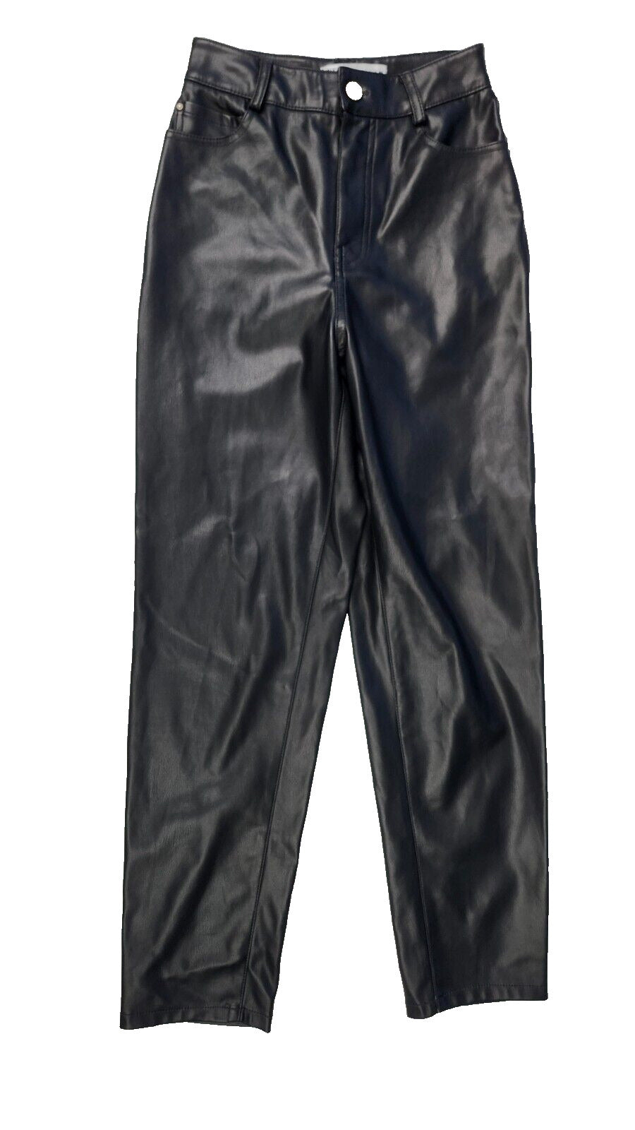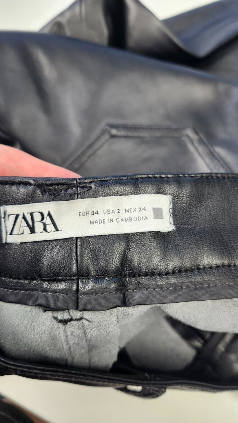 Zara Straight Leg Faux Vegan Leather Pants Black Size 2